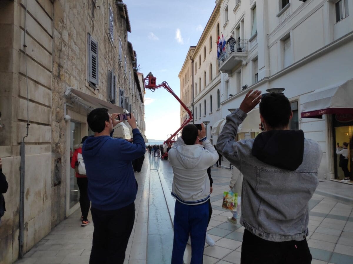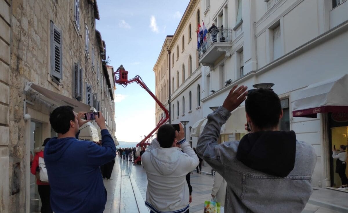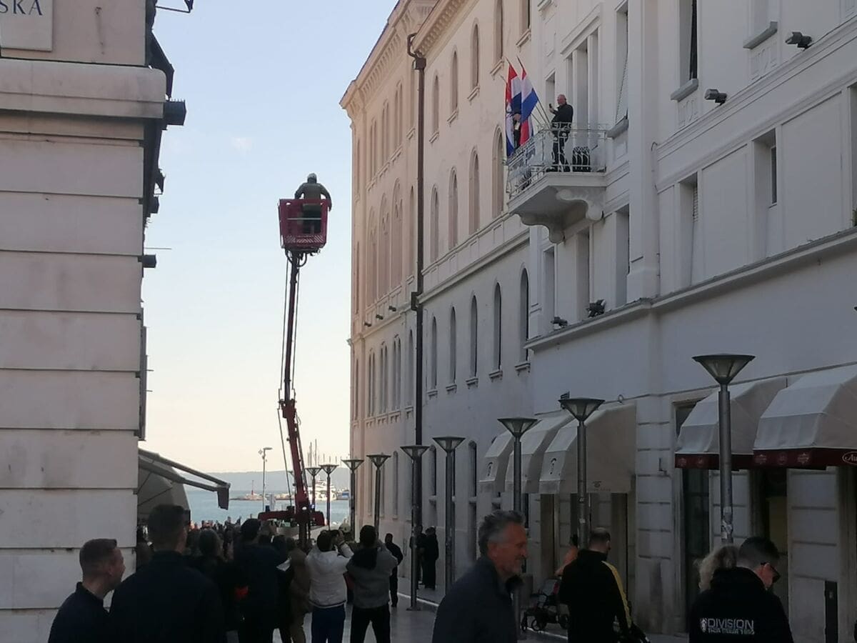 No njegov popodnevni performans danas je iza 18 sati prekinula vatrogasna intervencija. Kako doznajemo, u Marmontovu su stigla tri vatrogasca JVP-a Split s dva vozila. Razlog intervencije je bila škura koja je zbog starosti prijetila padom, što je predstavljalo ozbiljnu prijetnju po sigurnost prolaznika.