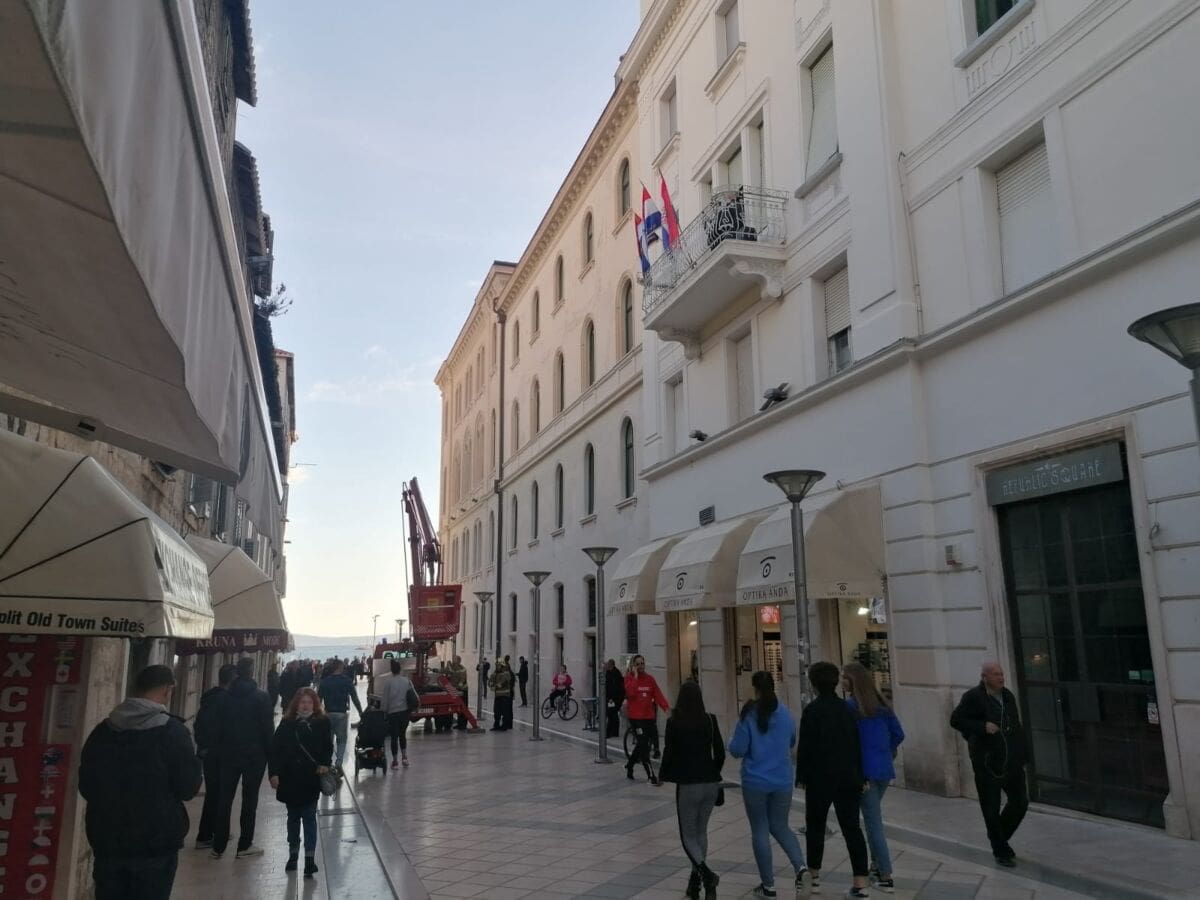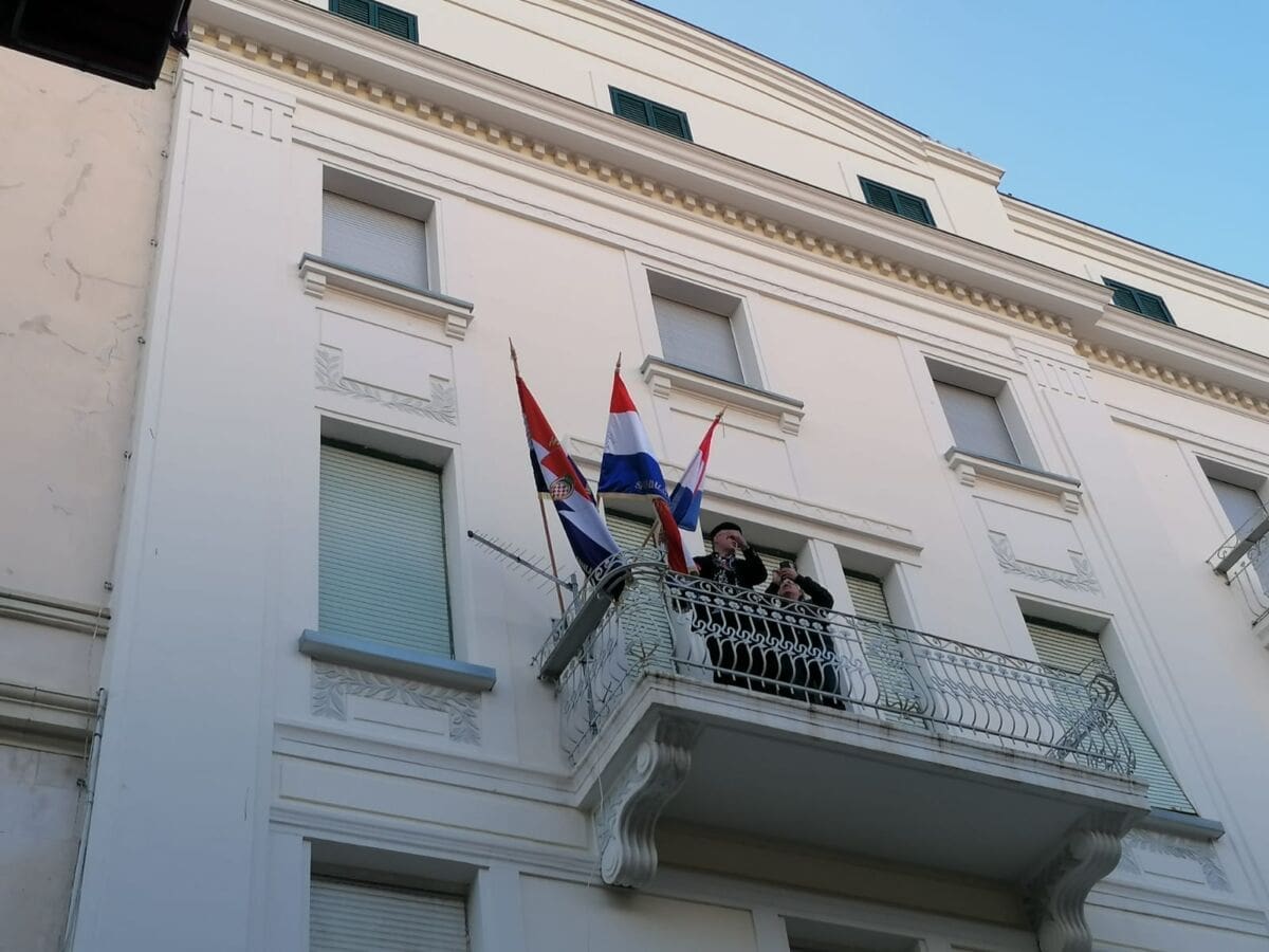 Kandidat HSS-a drugi dan zaredom ima obraćanje sa stranačkog balkona iznad Marmontove ulice u Splitu. Siniša Vuco ne drži duge govore, a okupljene zna "počastiti" pjesmom.