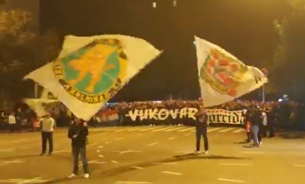 Kolona se u 19:30 sati kratko zaustavila na križanju s Dubrovačkom ulicom. Skandiralo se "Vukovar, Vukovar".