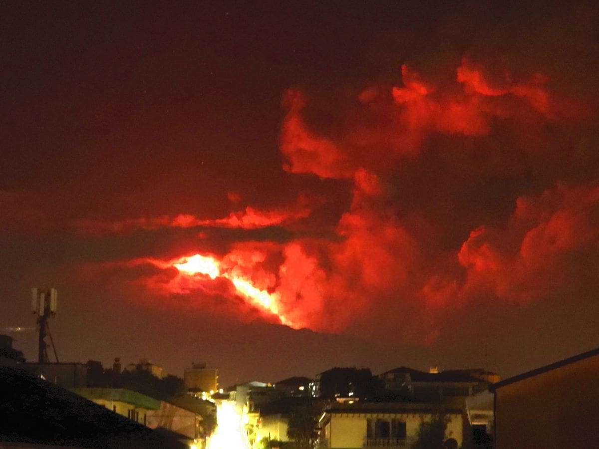 Nakon ponoći, aktivnost se brzo intenzivirala i kulminirala visokim stupovima lave i masivnim eruptivnim stupom koji je dosezao najmanje 7,5 km nadmorske visine. Vjetar je stup dima i pepela nosi na istok-sjeveroistok, a pepeo je padao između područja Puntalazza i Mascalija u blizini jonske obale.