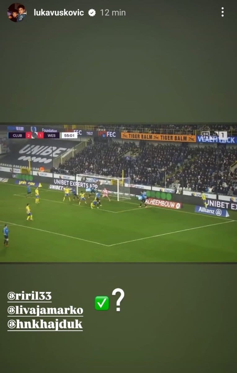 Mladi je igrač Tottenhama na posudbi u Westerlou u prošlom kolu zabio gol Mechelenu, a potom se oglasio na Instargram profilu podijelivši snimku gola i označio je Marka i Iris Livaju, ali i Hajduk. Stavio je do njih potvrdnu kvačicu i upitnik aludiravši na nedjeljni pogodak Livaje u Dalmatinskom derbiju.
