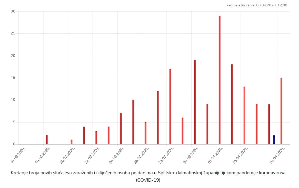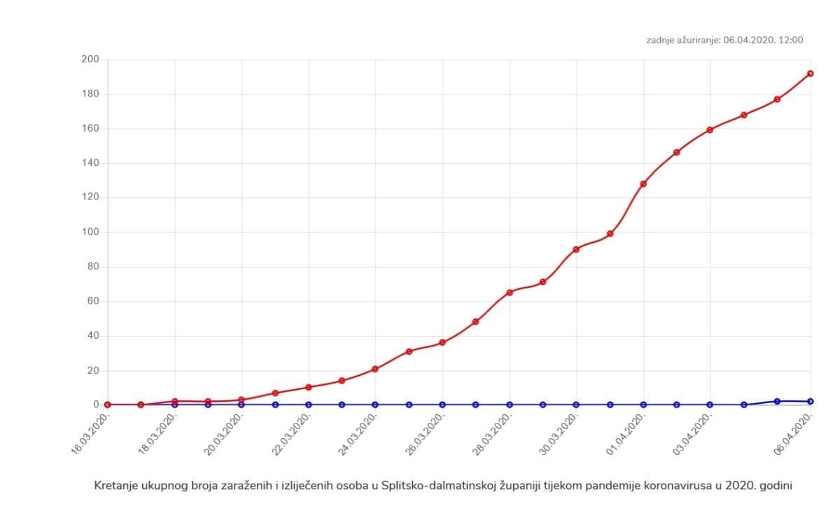- Stožer SDŽ od danas ima web stranicu. Stranica se vodi kao koronavirus.dalmacija.hr. Stranica je pokrenuta i odrađena volonterski. Na tim stranicama možete vidjeti dnevne podatke, grafove, kako oboljelih tako i onih koji su u samoizolaciji. Sve kontakte možete naći na toj stranici, mogu se naći prijave za volontere, za pomoć Crvenom križu ili bilo kojoj drugoj instituciji koja je vezana za koronavirus. Na stranici se nalaze i upute i plakati kako se ponašati u doba pandemije.