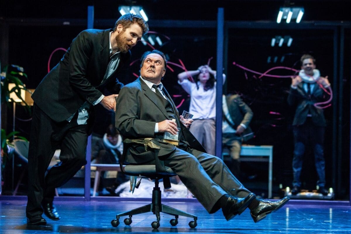 Sjajna scenografija Ozrena Bakotića izgleda kao metafora društva koje kroz staklene stijenke kafića voajerski (pr)osuđuje tuđe živote, a kostimografkinja Ana Marin izvrsno je pokazala kako odijelo nekad čini čovjeka, jer scene „mazanja očiju“ svima oko sebe uključuju samo kičasti elizabetanski ovratnik, korzet i neukrotivu zlatnu haljinu, kao za kockarnice Las Vegasa, u trenutku kad se Lucenzio kocka blagošću svoje neotkrivene goropadnice, dok ona prava skrušeno stiže na pozornicu, božanstvenija od Danteove Beatrice.