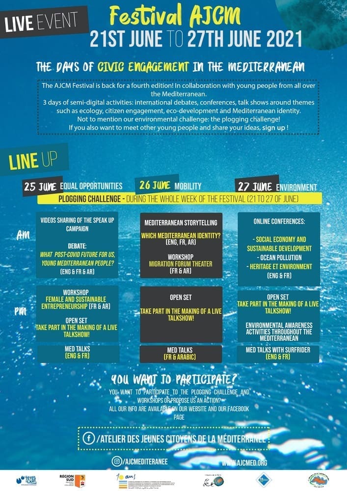 AJCM je mreža mladih Mediterana koja nudi prostor za dijalog i građansku suradnju mladima u više od 14 zemalja, putem radionica, „talk show“ formata, digitalnih, internacionalnih i lokalnih aktivnosti s temama okoliša, jednakih mogućnosti i mobilnosti. AJCM je također skupina pokreta, udruga i javnih tijela koja dijele isti cilj: promicanje i pozivanje uključivanja građana u Mediteran. AJCM postoji od 2014. godine od kada mladi predlažu i ističu inicijative za zajedničko djelovanje kako bi promijenili stvari (i stvarnost) oko sebe. Te aktivnosti uključuju vrijednosti poput solidarnosti i razmjene iskustava, a nakon festivala se prezentiraju donositeljima javnih odluka s kojima AJCM surađuje kako bi se stvorio novi model predstavničkih tijela mladih. Jelsa sudjeluje u programu u subotu 26. lipnja, u 10h, kada će se predstaviti u okviru online radionice „Mediteranski storytelling“. Mediteranski storytelling će tako ući u ovogodišnji „online“ dio programa jelšanskog festivala vina, maslina i nasljeđa.