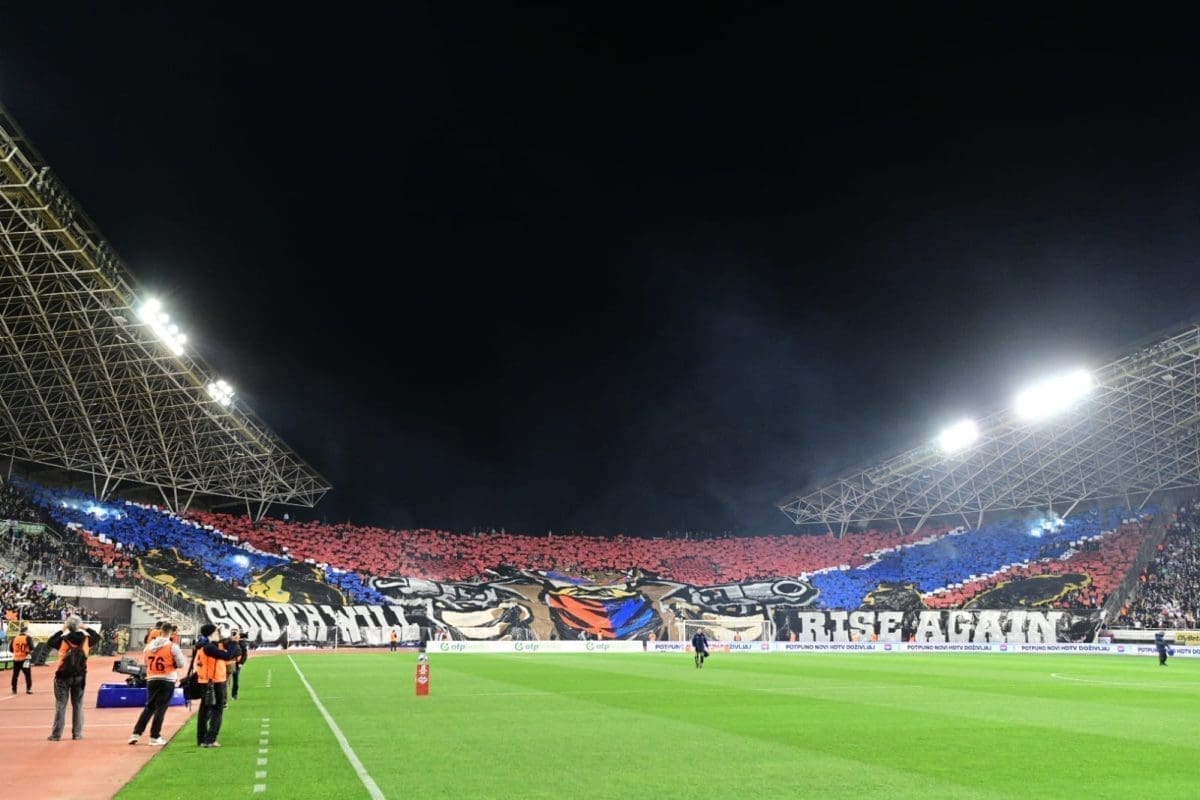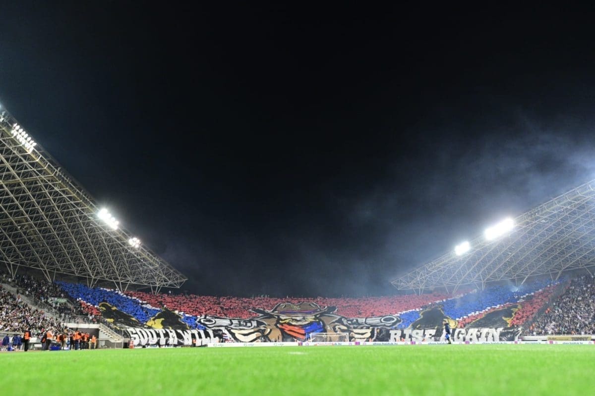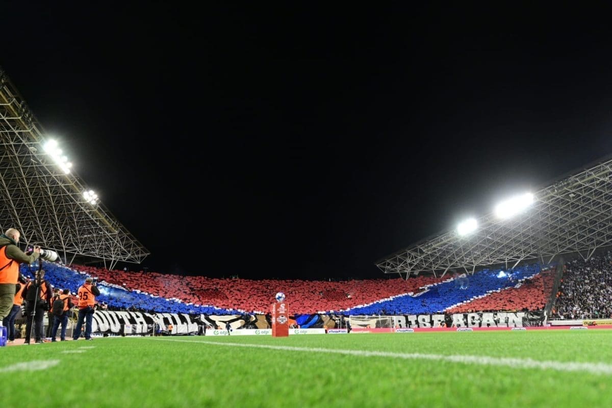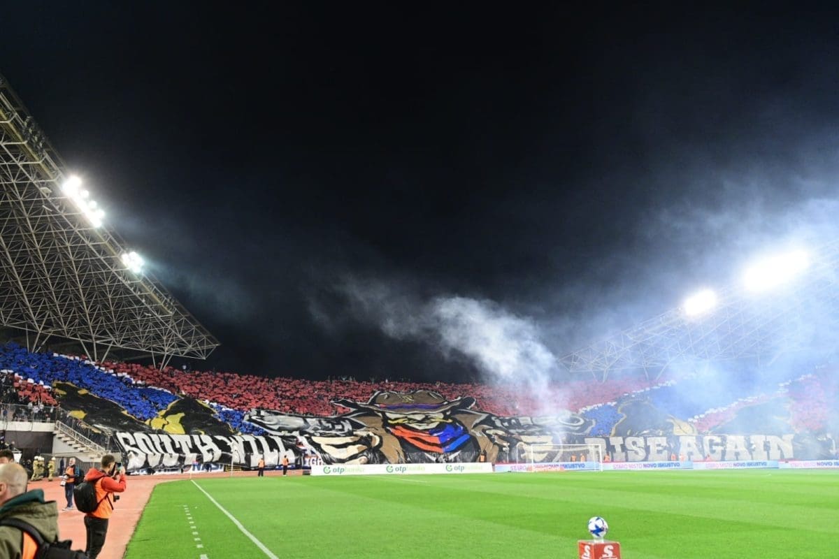 Torcida je još jednom priredila fanstastičnu koreografiju koje bi se drugi mogli samo posramiti. Na sjeveru se pokazala južnjačka zastava, a ispod nje natpis: "SOUTH WILL RISE AGAIN", a potom je podignut kauboj s dva pištolja i četiri čovjeka u crnom.