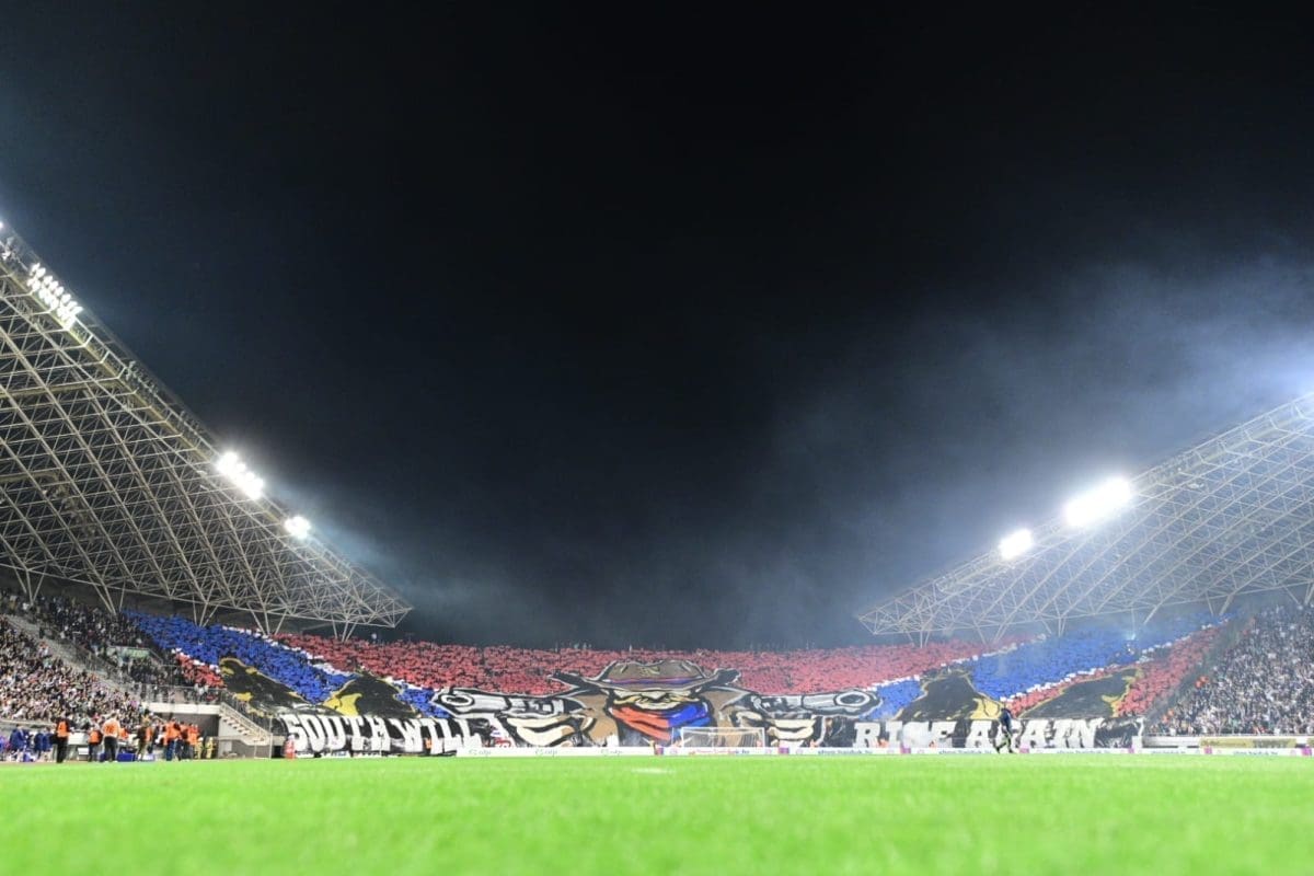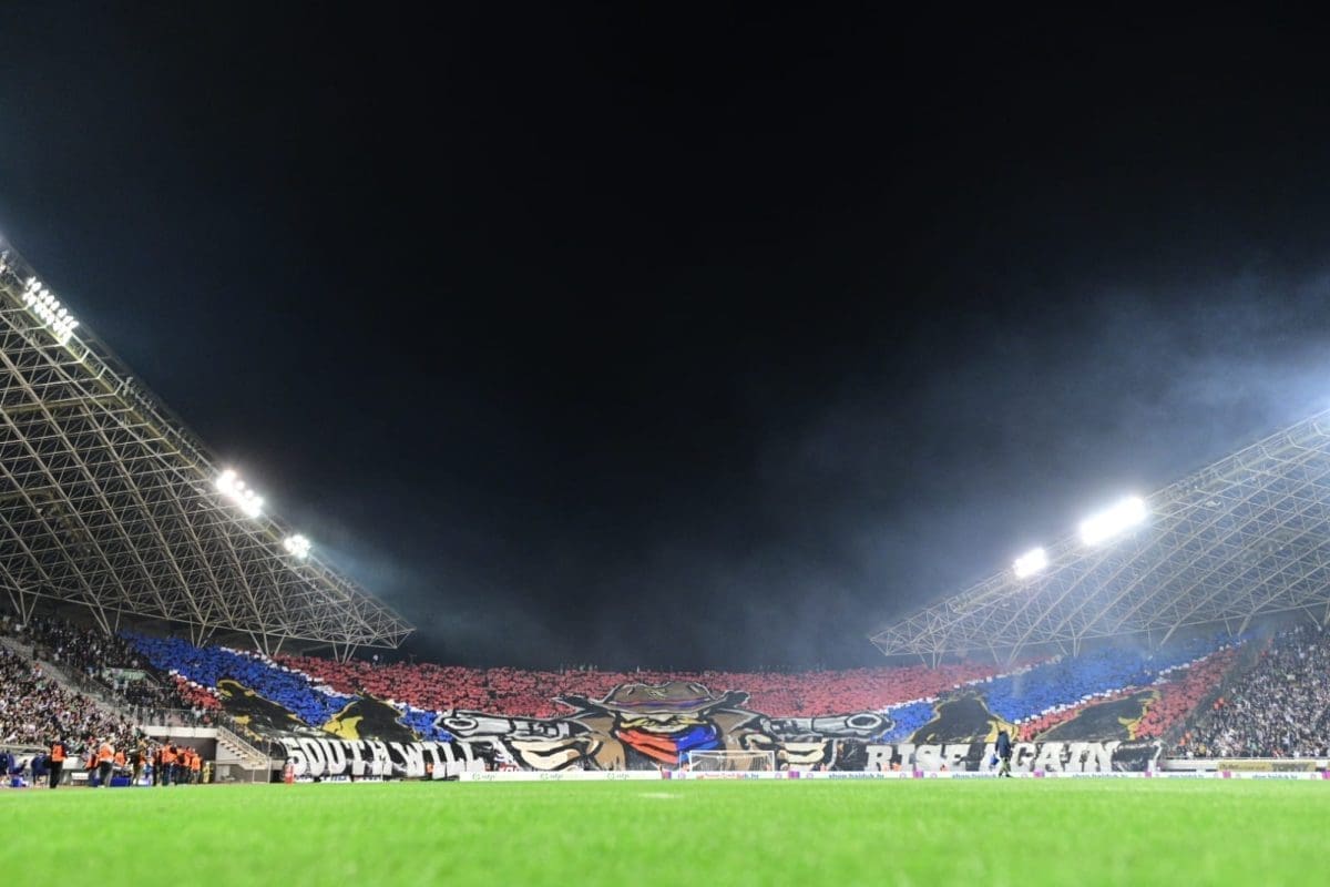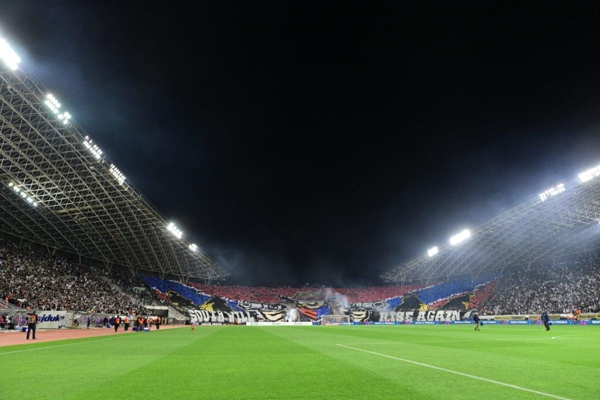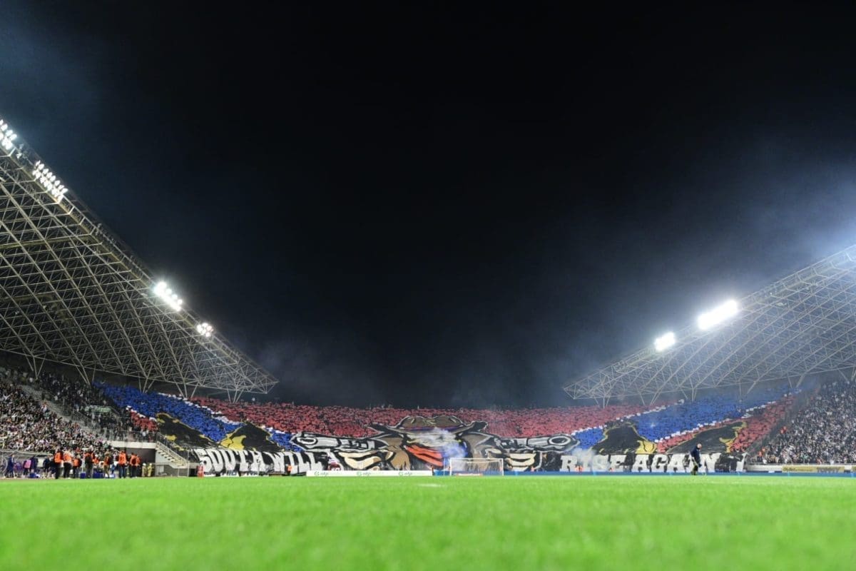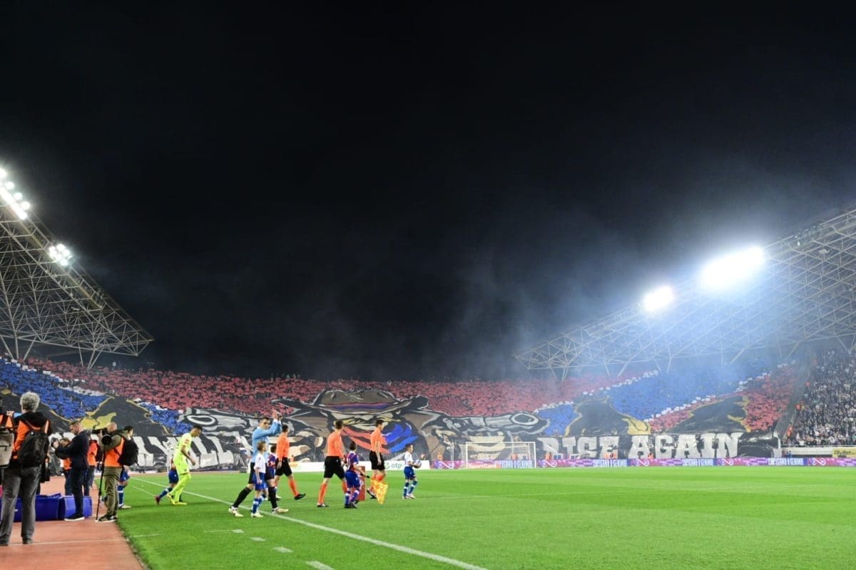 Torcida je još jednom priredila fanstastičnu koreografiju koje bi se drugi mogli samo posramiti. Na sjeveru se pokazala južnjačka zastava, a ispod nje natpis: "SOUTH WILL RISE AGAIN", a potom je podignut kauboj s dva pištolja i četiri čovjeka u crnom.