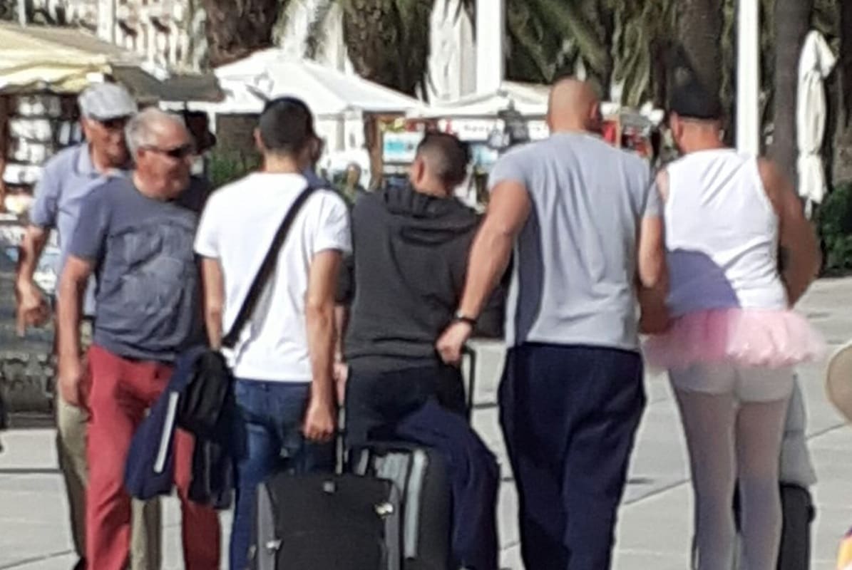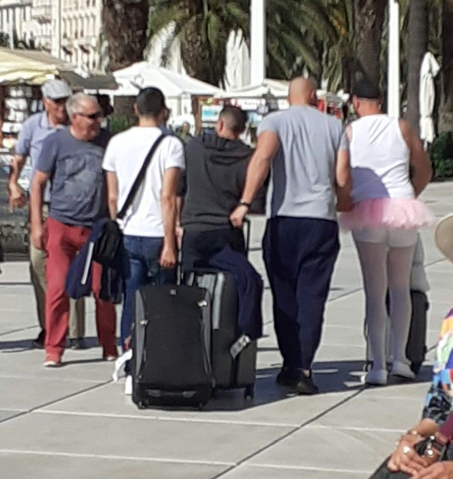 Naime, ekipa od nekoliko muškaraca prošetala je najpoznatijim dijelom Splita s prtljagom, a prizor bi sigurno prošao neopaženo da nije bilo neobičnog outfita jednog od njih.