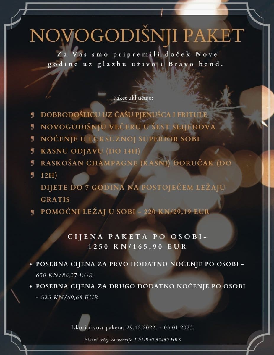 HOTEL PARK - Za cijenu od 120 kuna pripremili su doček Nove godine uz Bravo bend.