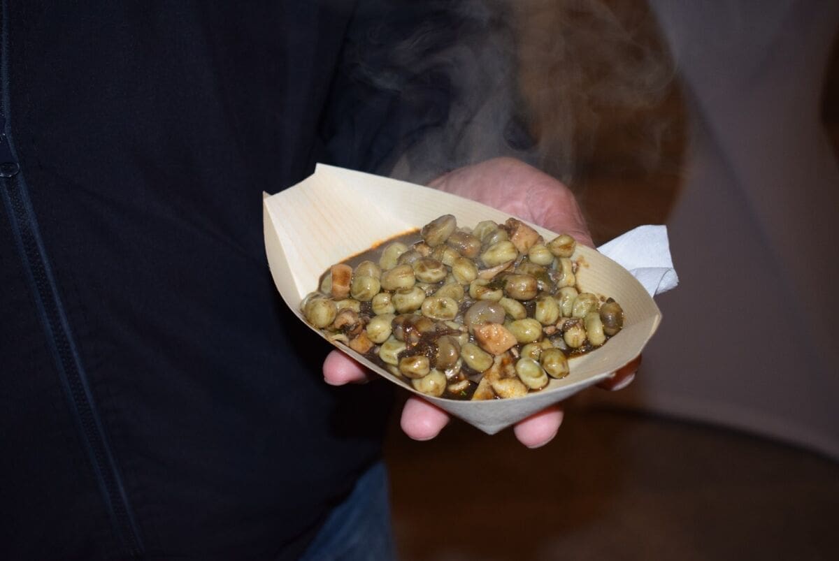 Ovo je drugi, gastro tjedan, u kojem se pripremaju tradicijska kaštelanska jela i kaštelanska vina. Sinoć je za sve prisutne kuhao chef Slovenac Joža Oseli te svjetski prvak u pripremanju jela od sipe i boba Boško Ivković. Na samom početku večeri ponuđena je rogačuša te kaštelanski kolač. Nakon toga se mogli kušati pašticada s domaćim njokima, bob i sipa, polpete sa špagetima, riba u savuri te teleća jetra s palentom.