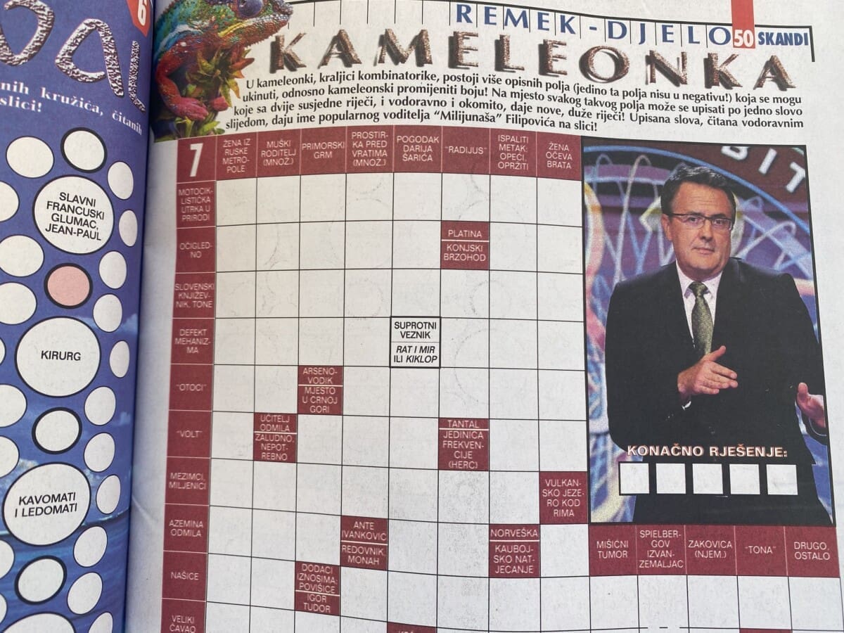 Poštovani čitatelji, dovoljno je da nabavite novi 684. broj 50 SKANDI (upravo na kioscima!), okrenete 11. stranicu, te da isključivo kemijskom olovkom ili flomasterom ručno upišete pravih pet slova konačnog rješenja (osobno ime našega najpopularnijeg kviz-voditelja) u kvadratiće popularne skandi-kameleonke, te da negdje na istu stranicu dopišete svoje ime, prezime i adresu!