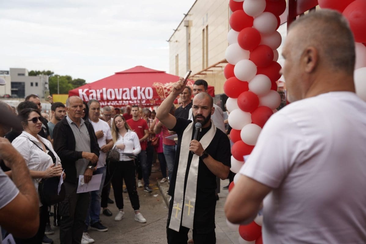 Na samom otvaranju svećenik je blagoslovio preuređenu trgovinu, sve prisutne i zaposlenike, a čast svečanog rezanja vrpce pripala je mladim članovima Uprave ovog poduzeća.
