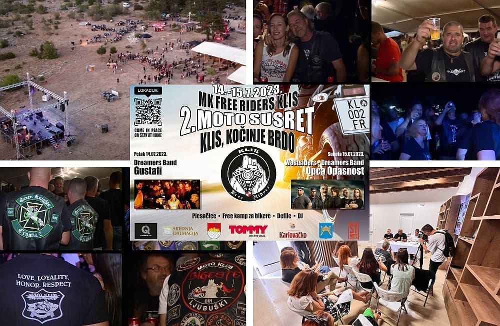 Joško Bonači, moderator najave ovog događanja, svojevrsni je jamac kvalitete jer, kako je sam priznao u jednom trenutku, bio je na puno moto susreta, ali prošlogodišnja na Kočinjem brdu je ipak bila nešto posebno. Peogram inače započinje u petak popodne dolaskom gostiju, u 20,30 je službeno otvorenje, a zatim kreće svirka domaćeg Dreamers banda, da bi u 23,30 sati binu preuzeli Gustafi. Za subotu od 18 do 20 sati je predviđen defile Klisom, zatim se vraća u bazu gdje se organiziraju tradicionalne moto igre.