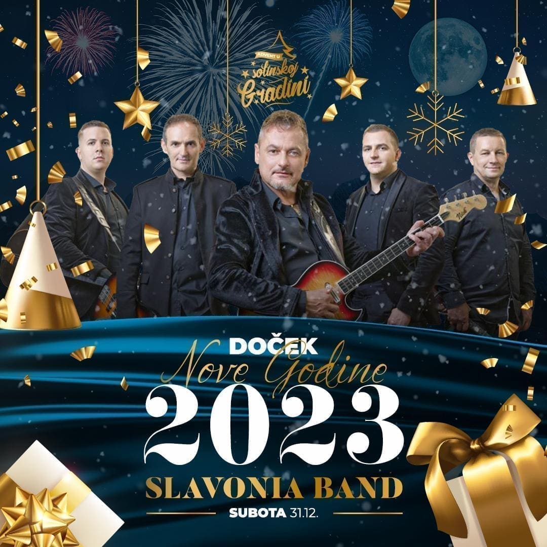 Nakon jutarnjeg zagrijavanja kreće sami doček u večernjim satima tako da vas već od 20.00 sati očekuje bogata ponuda hrane i pića na adventskim kućicama. U 22.00 sata na pozornicu stiže Slavonia band koji će Solinjane i posjetitelje uz svirku i dobru atmosferu uvesti u Novu godinu.