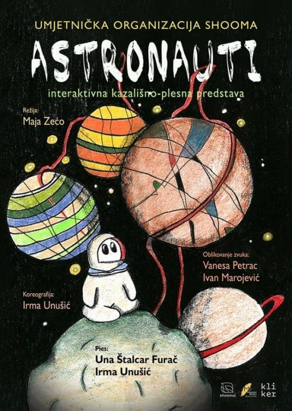 Predstava „Astronauti“ u produkciji umjetničke organizacije Shooma iz Bjelovara je interaktivna plesno-kazališna predstava za cijelu obitelj, namijenjena za dob stariju od 3,5 godine.