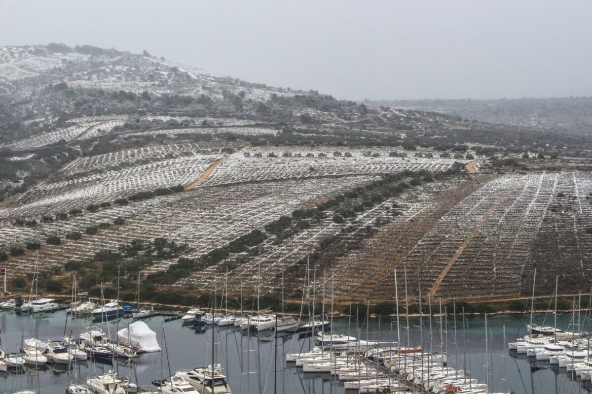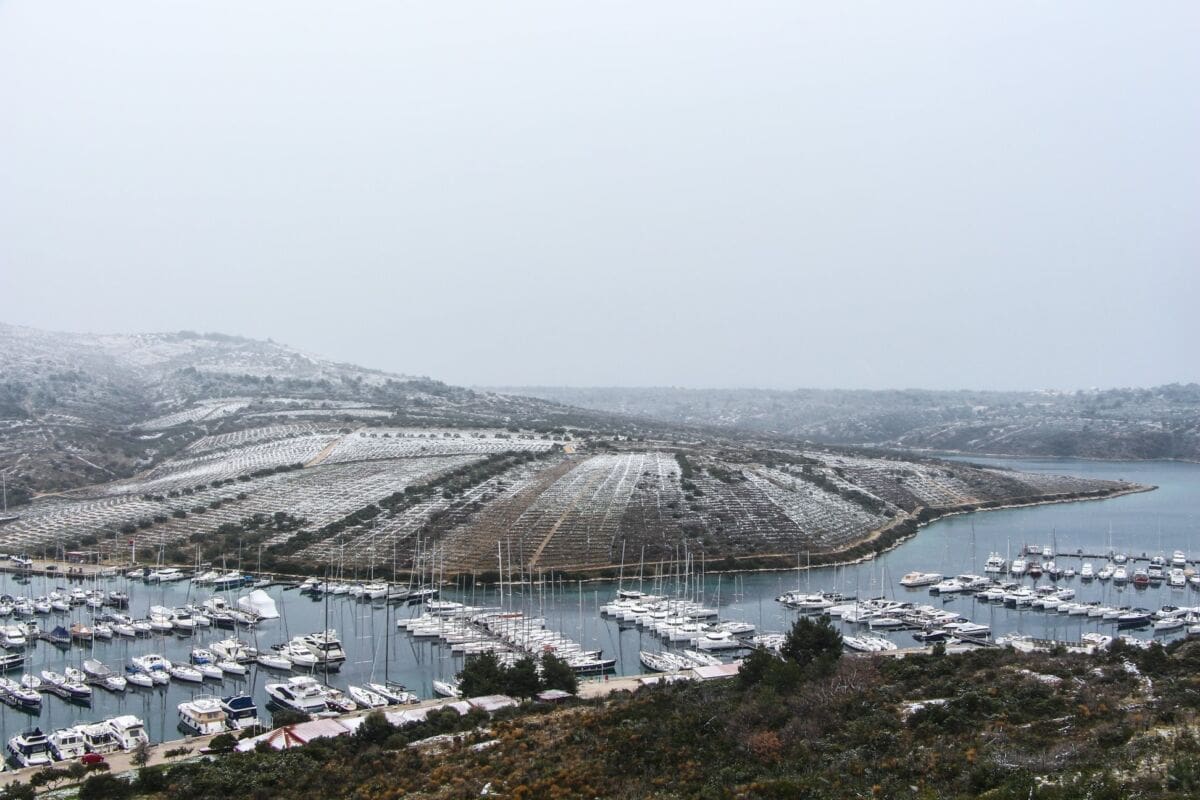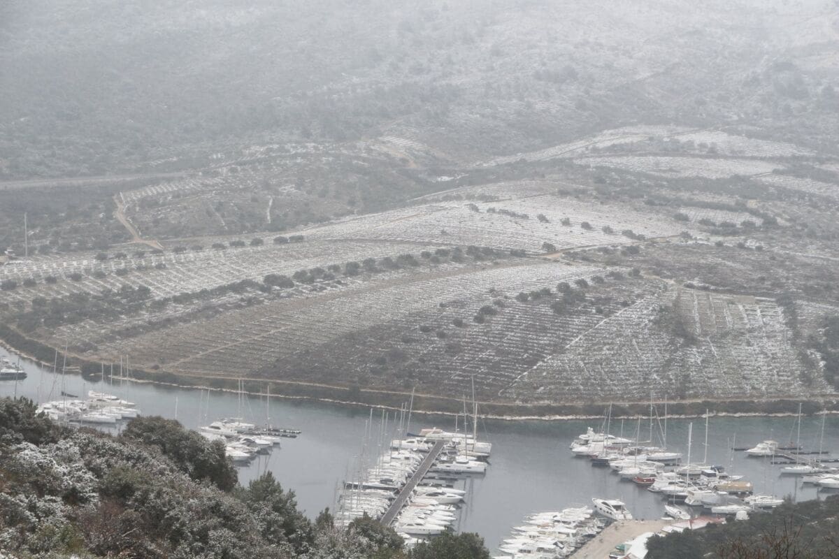 Jedan od dalmatinskih obalnih gradova koji je dobio najviše snijega je Primošten. Tamo je snijeg počeo padati od ranog jutra kada je temperatura pala ispod nula Celzijevih stupnjeva.