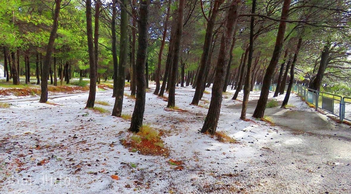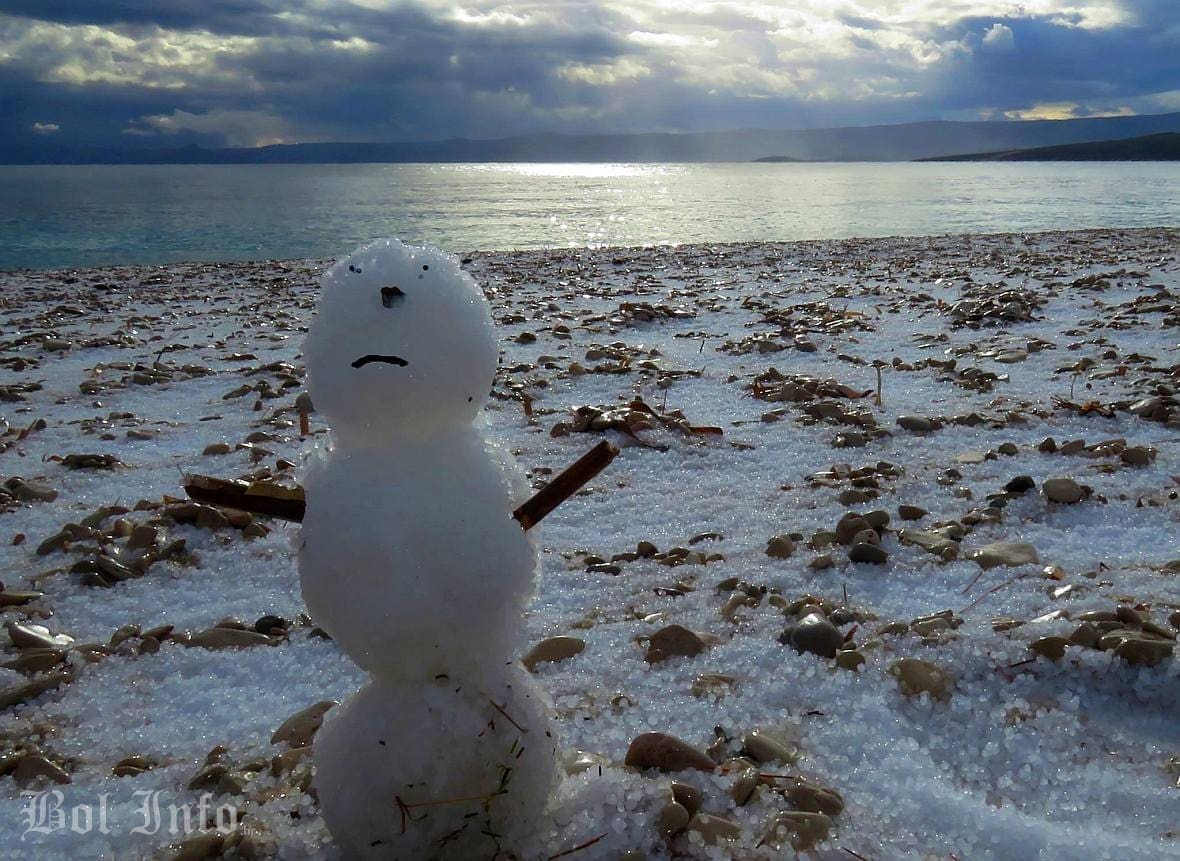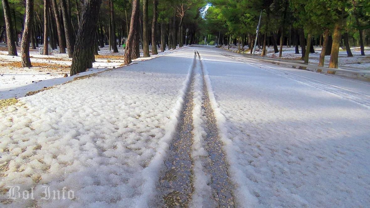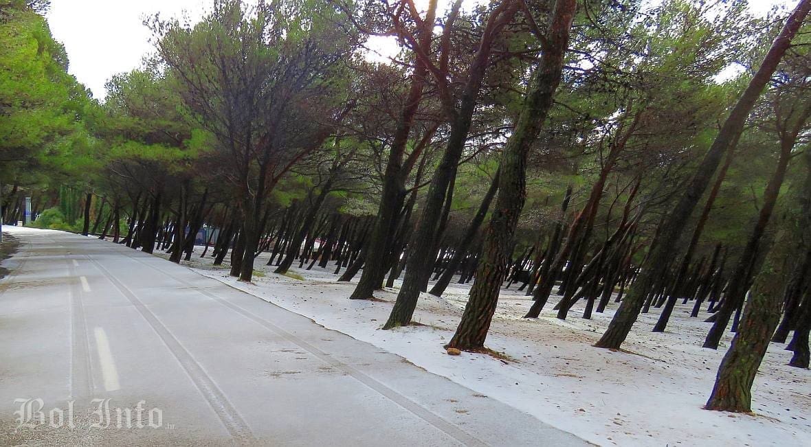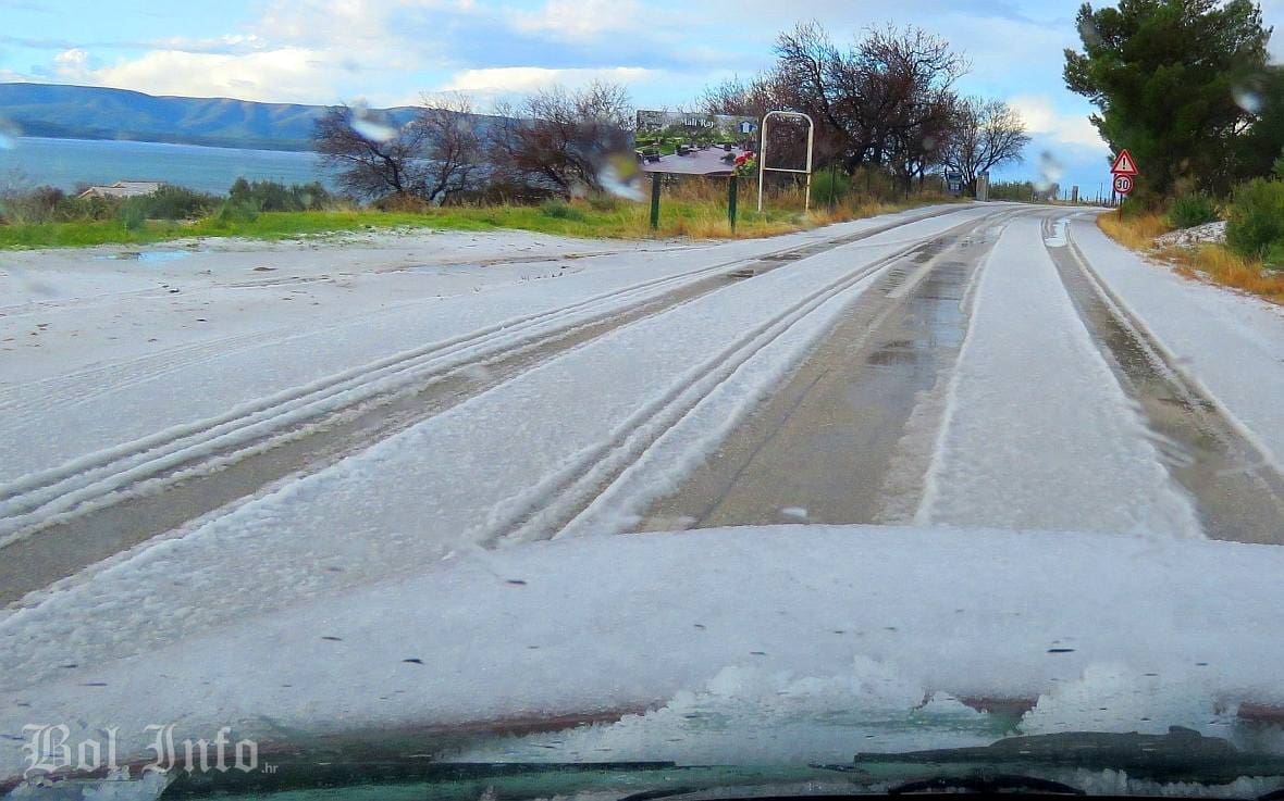 S otoka Brača stižu nam fotografije tuče koja je zahvatila južne obale otoka. Tako je nekoliko centimetara tuče zabijelilo Bol i jednu od najpoznatijih europskih plaža, Zlatni Rat.