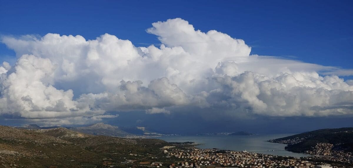 U ranim poslijepodnevnim satima došlo je do jačeg razvoja oblaka iznad srednjodalmatinskih otoka. Neobično za prosinac, razvila se linija kumulonimbusa čiji su vrhovi, baš kao u toplijem dijelu godine, sezali nekoliko kilometara u visinu.