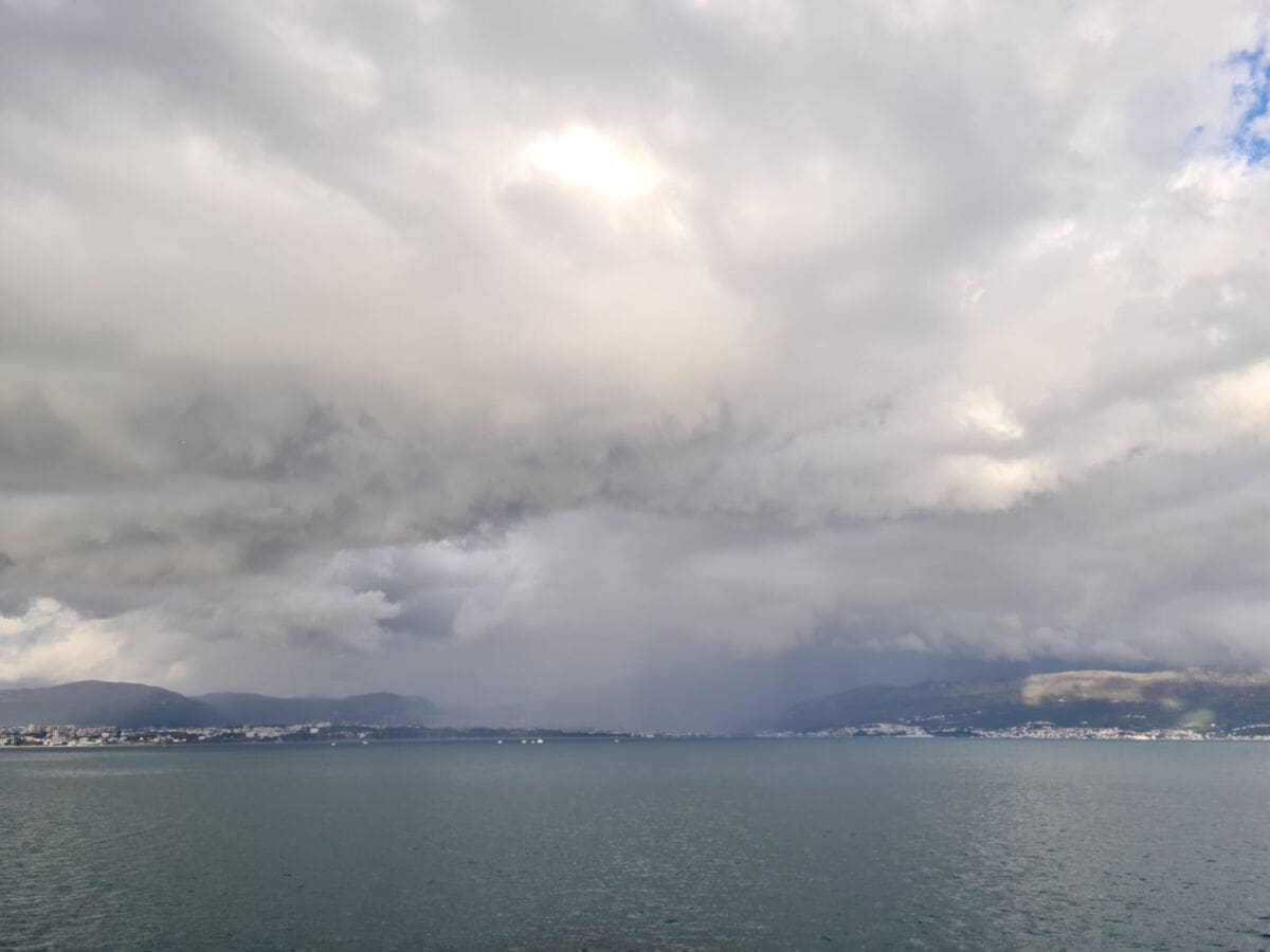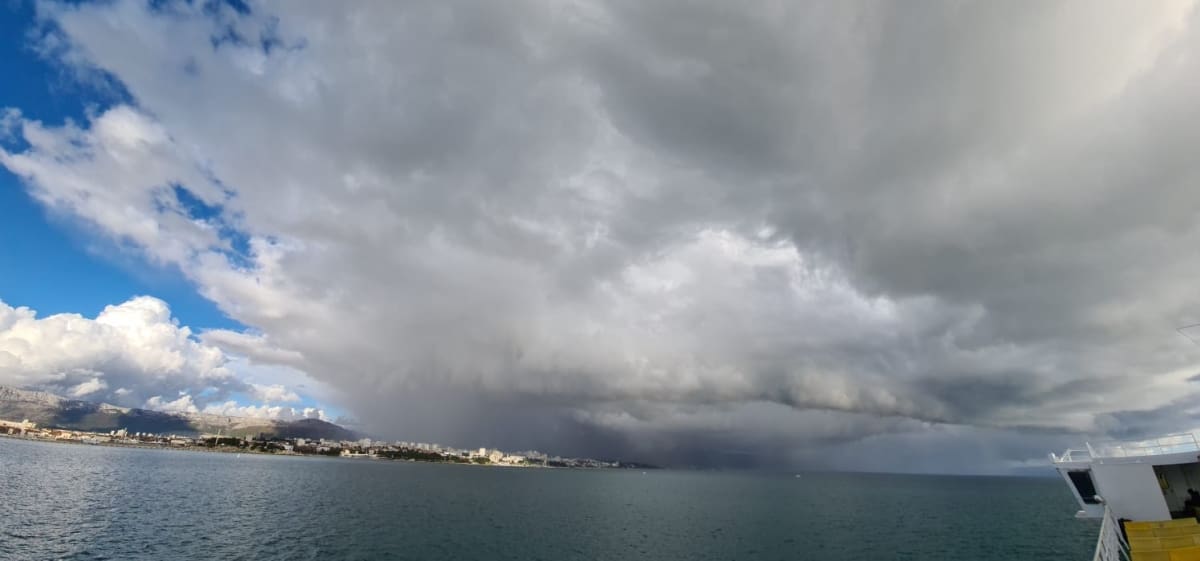 Zanimljivo, na zapadu Splita zadržalo se suho i djelomično sunčano. Osim po oborinama, vidi se to po temperaturi zraka. Primjerice, u Spinutu je u 15 sati izmjereno toplih 16 stupnjeva, na Mejašima 11, Žrnovnici 10 stupnjeva...