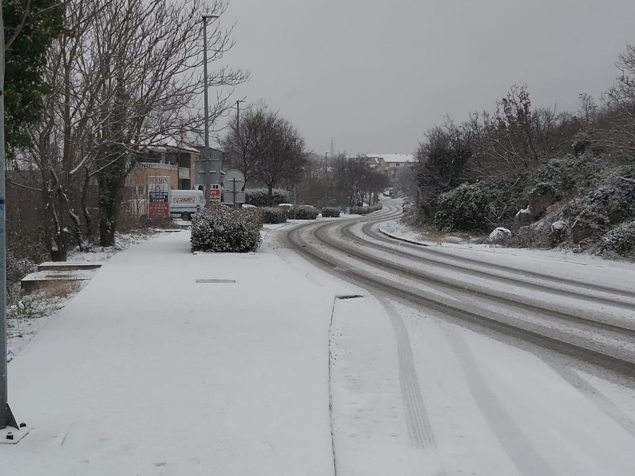 Snijeg do obale! Omiš pod pahuljama, na cestama zimski kaos i zabrane