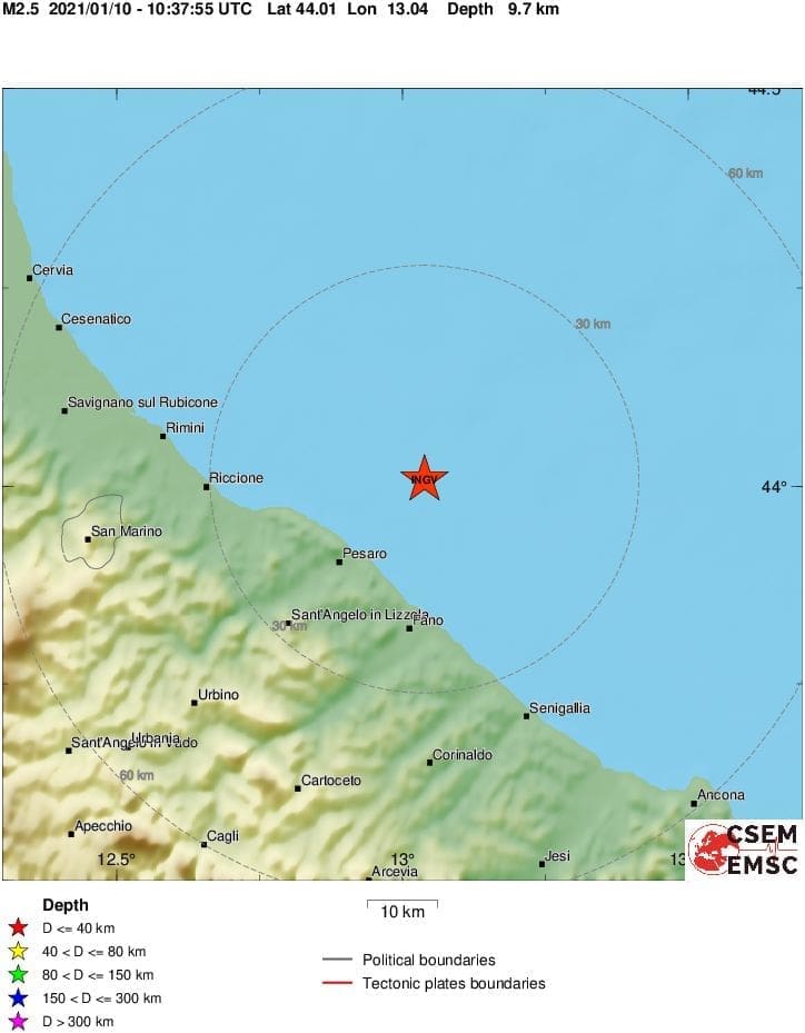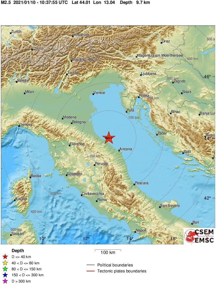 Prema podacima EMSC-a u 11 sati i 37 minuta dogodio se potres čija je magnituda bila 2.5 prema Richteru, a epicentar u Jadranskom moru, 38 kilometara istočno od Riminija.