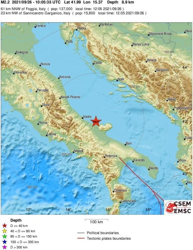 Epicentar mu je bio 61 km od talijanskog grada Foggia, a dogodio se na 9 kilometara dubine.