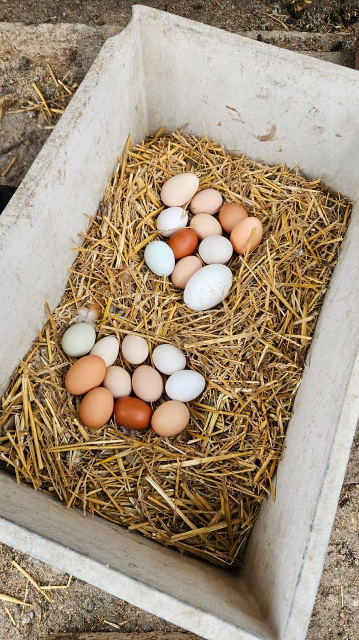 Na moje pitanje kako koke nesu jaja u boji, pojasnio je da imaju različit pigment od običnih jaja, a jaja u boji su zdravija te imaju manje kolesterola. Sami smo se uvjerili u veličinu gusjih jaja, koja su toliko velika i žuta, da je od jednog jajeta moguće napraviti fin omlet za jednu osobu. Pačja jaja su posebna priča, trenutno ima japanske i američke, patke, koje nismo htjeli smetati jer leže na jajima.