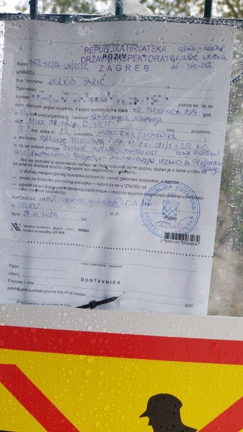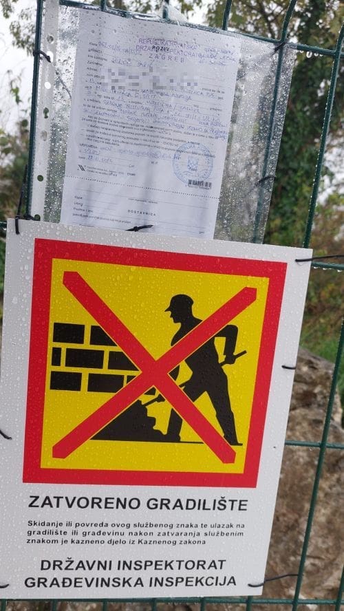 Građevinska inspekcija Državnog inspektorata zatvorila je jučer gradilište u Podstrani uz kulturno dobro poznato kao Zmijski kamen, postavila tabelu o zabrani radova na pristupnom putu te investitora i vlasnika Jerka Šarića pozvala na "saslušanje" u prostorije splitskog odjela Građevinske inspekcije.