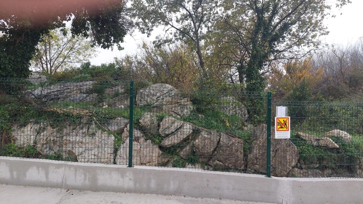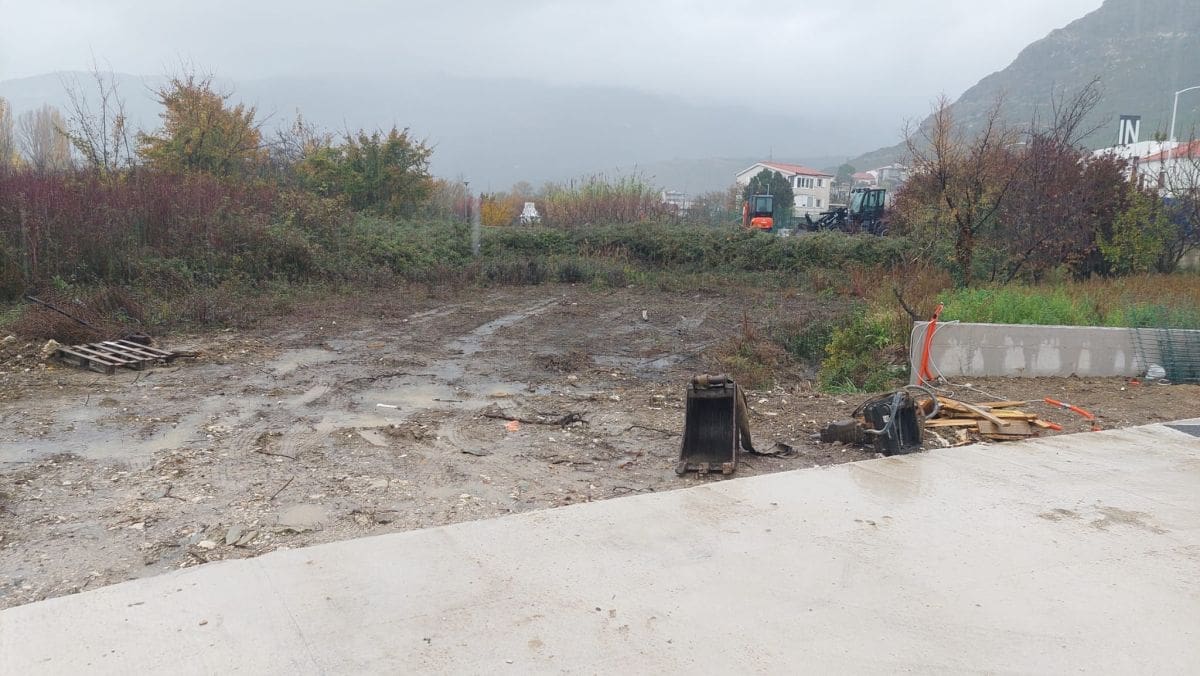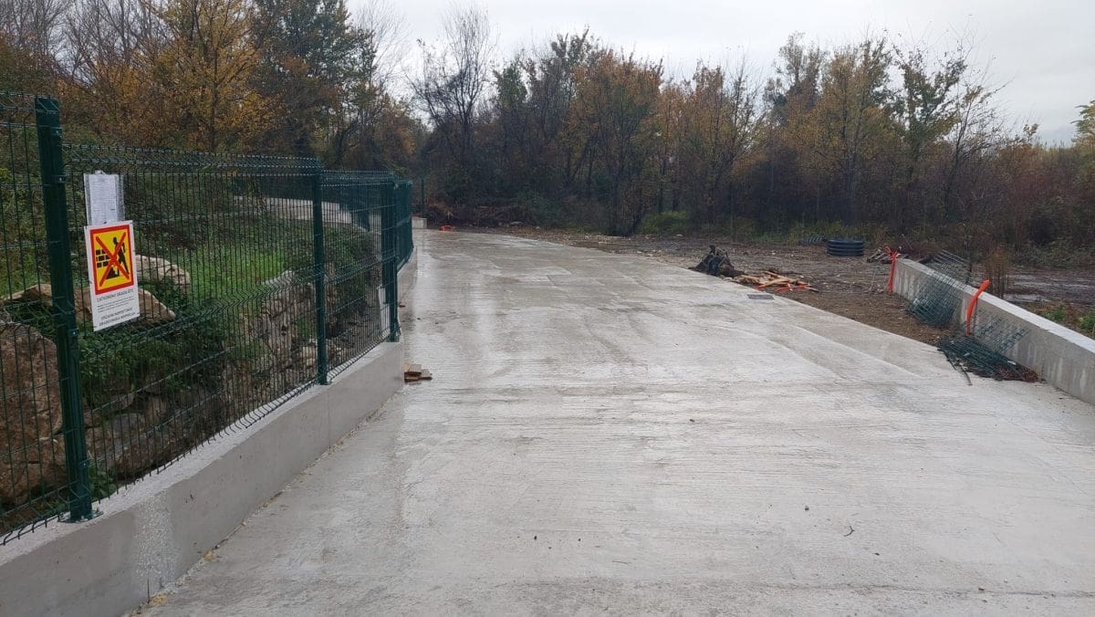 Jutros na gradilištu uz Zmijin kamen nije bilo radnika. Vlasnik je izbetonirao svoje poljoprivredno zemljište na parceli 321/1 i 322 i i na njima ogradio put s ceste za Žrnovnicu predviđenom rasvjetom do također svojih manjih parcela 318 i 319, ali i do parcele 361 od 1.300 kvadrata uz obalu Žrnovnice, odnosno javnog dobra u općoj uporabi pod upravom Hrvatskih voda. Vlasnik je i parcela 364 i 374 uz obalu rijeke ukupne površine 2.700 kvadrata, ali one nisu susjedne ranije navedenima, no nisu ni daleko. Između su dvije parcele upisane drugih vlasnika od 1.500 kvadrata.