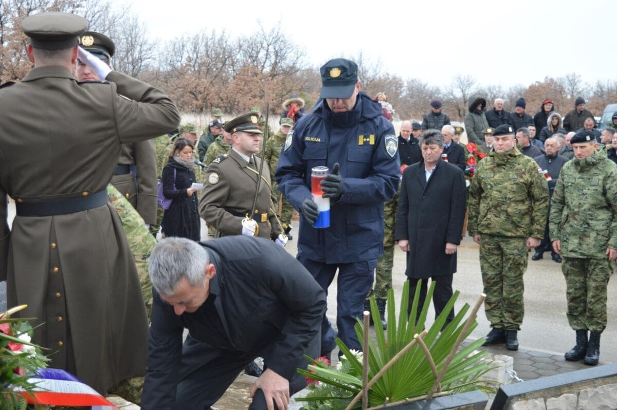 U 9 sati, ispred Središnjeg križa na zadarskom gradskom groblju, u spomen na sve poginule hrvatske branitelje vijence su položili obitelji poginulih, nestalih i umrlih pripadnika VRO 'Maslenica'.