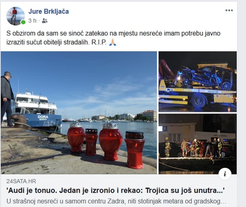 S obzirom da se zatekao na mjestu nesreće, Jure se oglasio i na svom Facebook profilu i rekao kako ima potrebu javno izraziti sućut obitelji stradalih.
