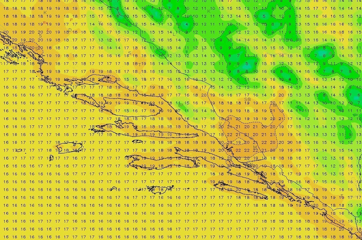 Utorak će biti promjenjiv s izmjenama sunčanih i oblačnih razdoblja. U većini predjela će biti suho, iako će mjestimice, osobito u sjevernoj Dalmaciji ujutro, biti slabe kiše. Puhat će umjereno do jako jugo koje će na moru imati vrlo jake, popodne ponegdje i olujne udare. Minimalne jutarnje temperature zraka od 5 ponegdje u Dalmatinskoj zagori do 15°C ponegdje uz obalu i na otocima. Najviše dnevne temperature od 14 do 19°C.