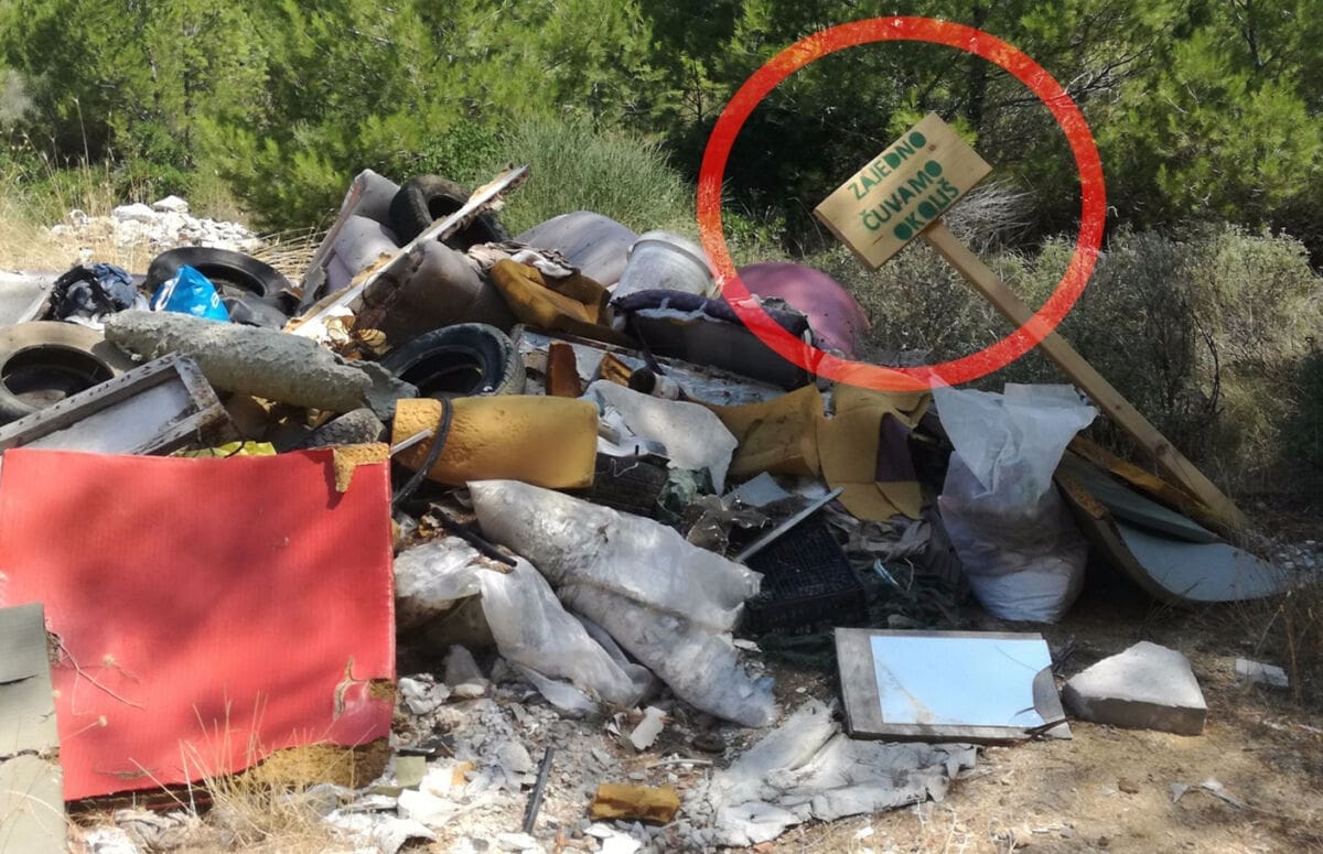 HGSS Ispostava Kaštela je objavio fotografiju gdje je vidljivo kako se stare automobilske gume i građevinski otpad ponovno odlagaju na mjesto koje je očišćeno, a uz njega postavljena tabla "Zajedno čuvamo okoliš".