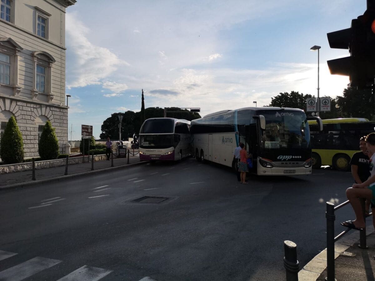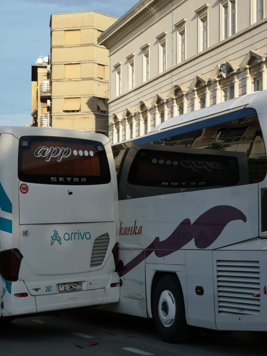 Dva autobusa sudarila su se oko 19.20 sati kod Biskupske palače u Splitu. Do prometne nesreće je došlo, prema riječima očevidaca, kada je autobus tvrtke Arivva krenuo skrenuti prema Zagrebačkoj ulici, a autobus Promet Makarske, koji je bio iza njega, krenuo proći i zahvatio lijevom stranom autobusa stražnji dio autobusa koji je skretao.