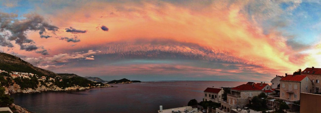 Dubrovnik je večeras svjedočio jednom od onih zalazaka sunca koji ostaju u pamćenju. Nebo iznad Jadranskog mora pretvorilo se u platno prepuno živih boja – od zlatne i ružičaste, do intenzivnih ljubičastih tonova.