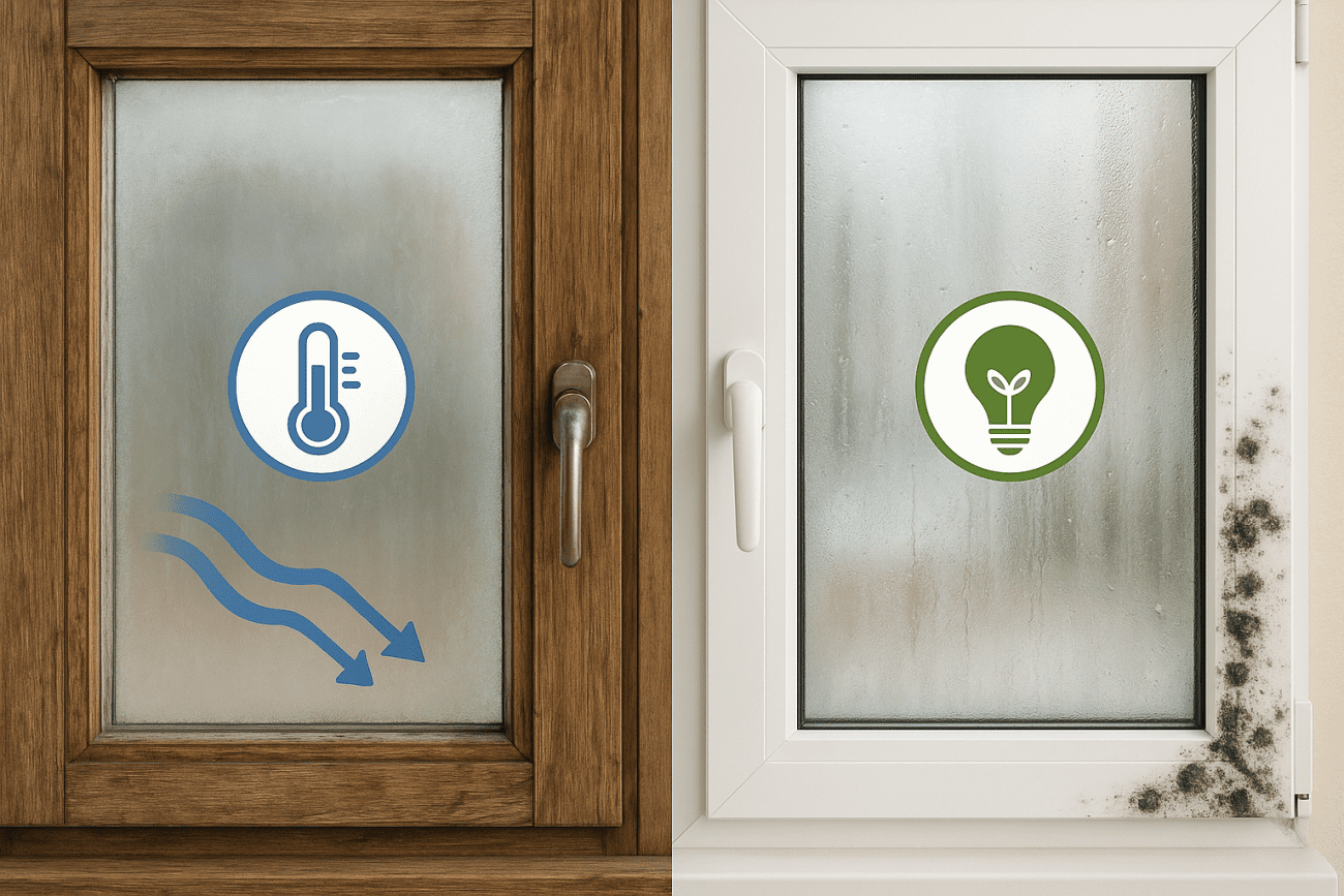Stara drvena stolarija nije dobro brtvila – no upravo su ti “nedostaci” omogućavali stalnu izmjenu zraka. Kada ih zamijenimo s modernim PVC ili aluminijskim prozorima, prostor postaje zrakonepropusan, a vlaga više ne izlazi prirodnim putem.