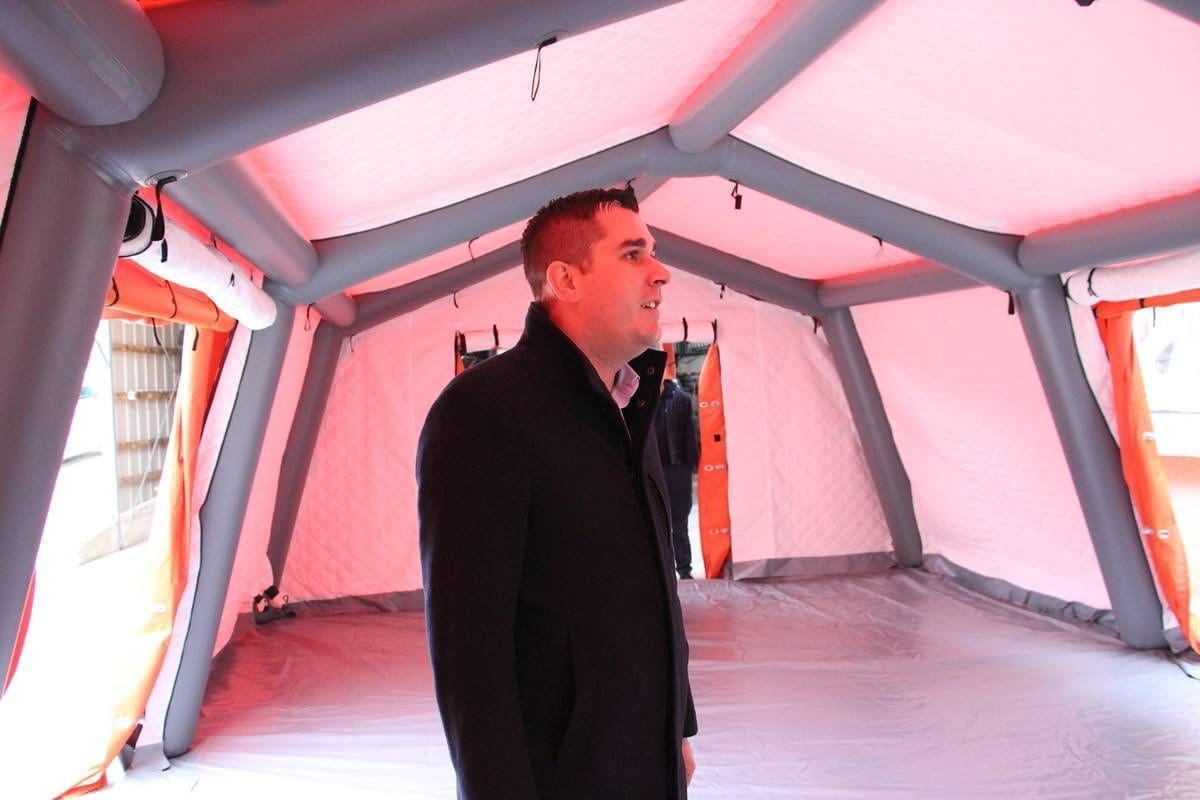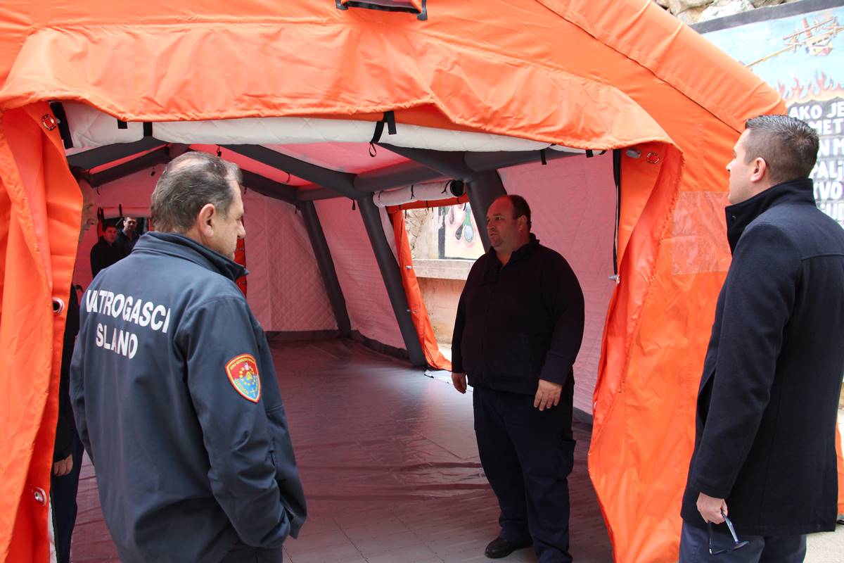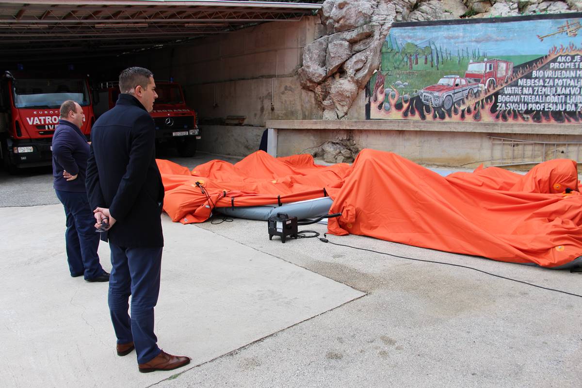 Zamjenik župana Joško Cebalo, ujedno i načelnik Stožera civilne zaštite predao je predsjedniku Vatrogasne zajednice Dubrovačko-neretvanske županije Ivu Franušiću pneumatski šator vrijedan 156 tisuća kuna koji se u slučaju potrebe može postaviti u roku od pet minuta.