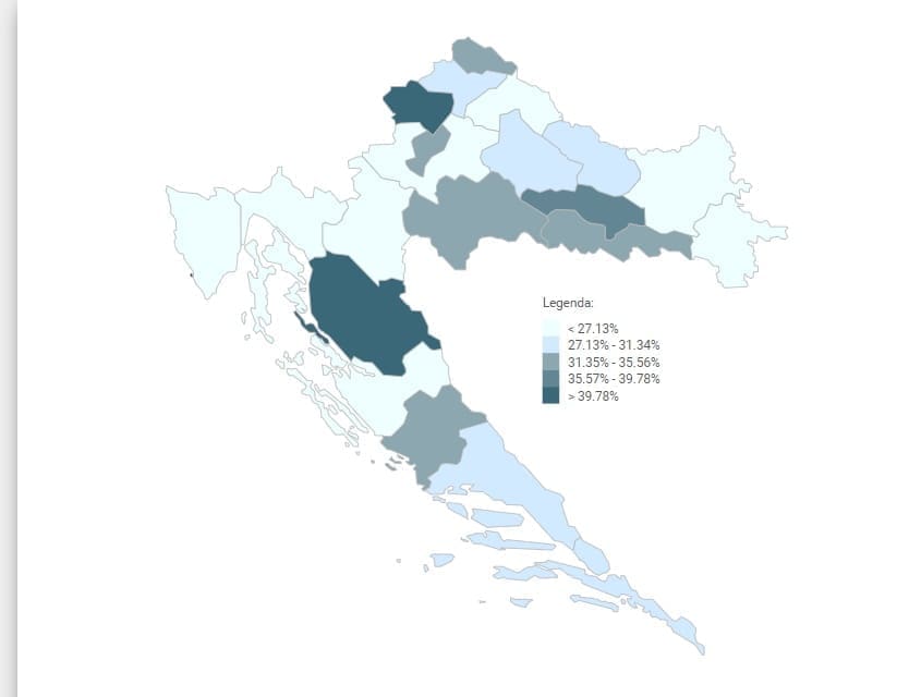 Među županijama rekorderi po izlaznosti su Ličko senjska (44,03 posto) i Krapinsko-zagorska županija (40,56), najmanju izlaznost imale su Zagrebačka (22,91 posto) i Istarska županija (23,32 posto).