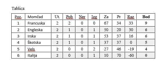 Subota, 12. veljače Vels - Škotska 20-17 (14-14)