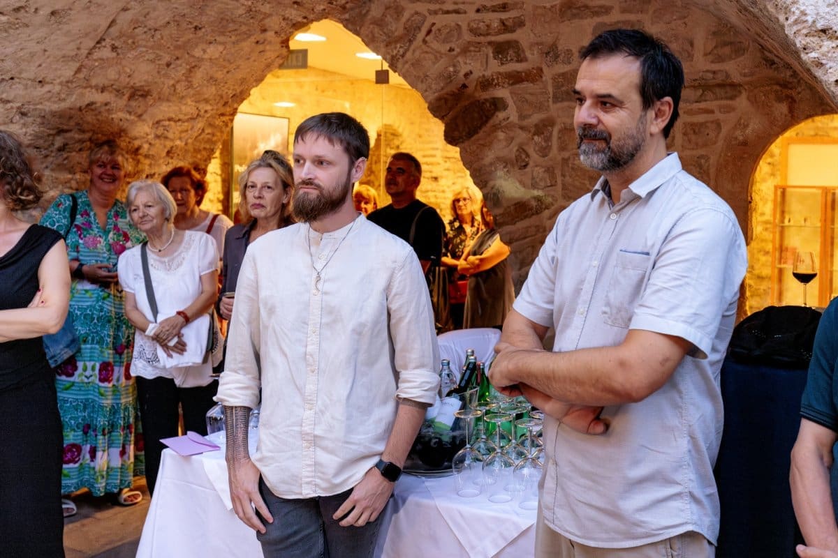 Rade Popadić, glavni urednik portala Dalmacija Danas, je govorio o tome kako je nastala ideja za projektom "Pečat od vrimena" te najavio nove serijale već ove jeseni. Izložbu je otvorio jedan od autora fotografija, Miroslav Lelas.