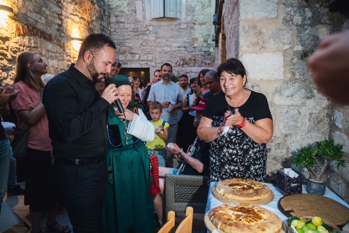 Četiri žene sinoć posjetiteljima otvorenja izložbe pričale o načinu pripreme prezentiranih jela, ali i davno zaboravljene priče svojih krajeva. Posebno velik pljesak dobila je Gornjopoljičanka Marija Prelas koja je na ojkavici zapjevala narodnu pjesmu "Slavuj piva".