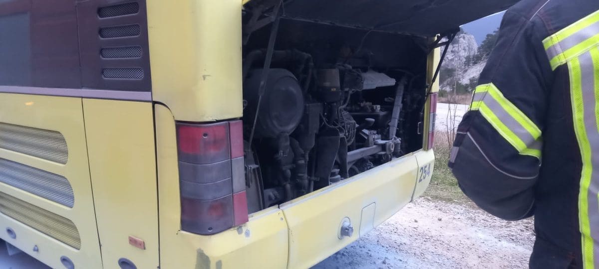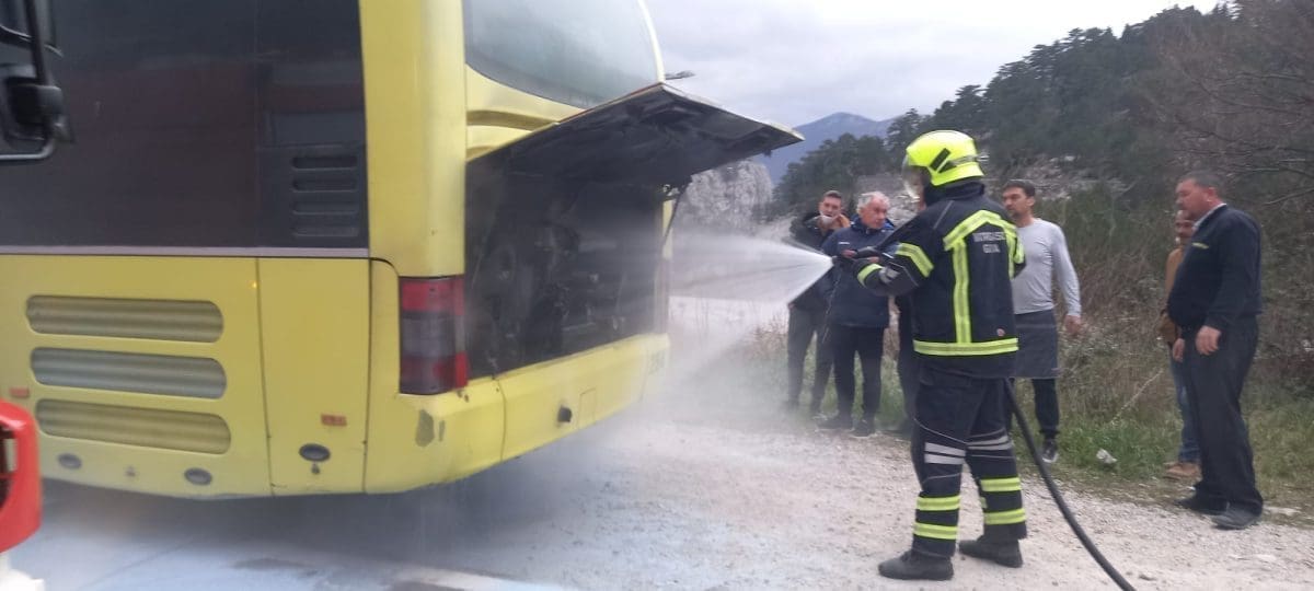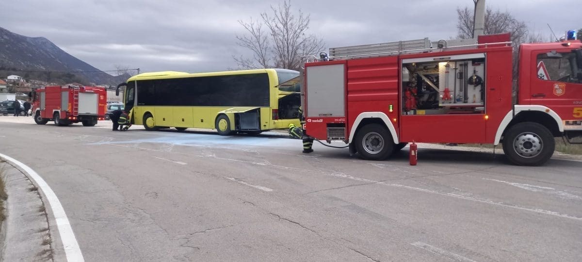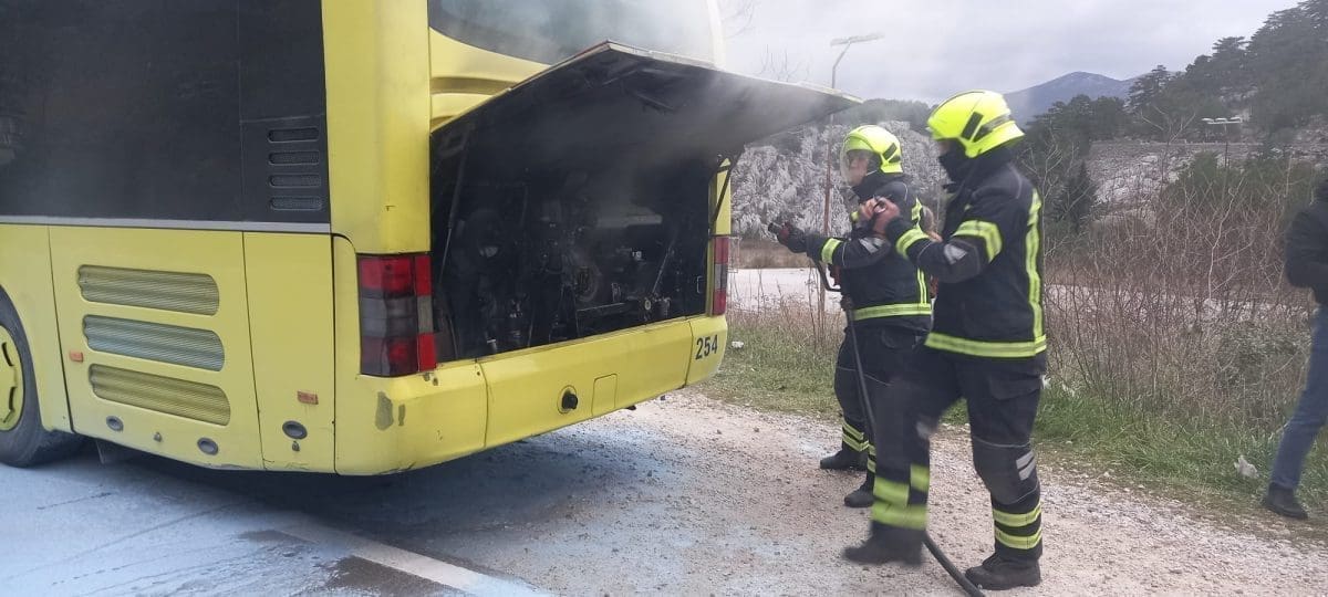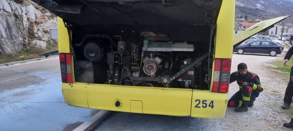 Ustanovili smo da se zapalio motor autobusa. Putnici su napustili autobus i nije bilo bilo kakvih problema.