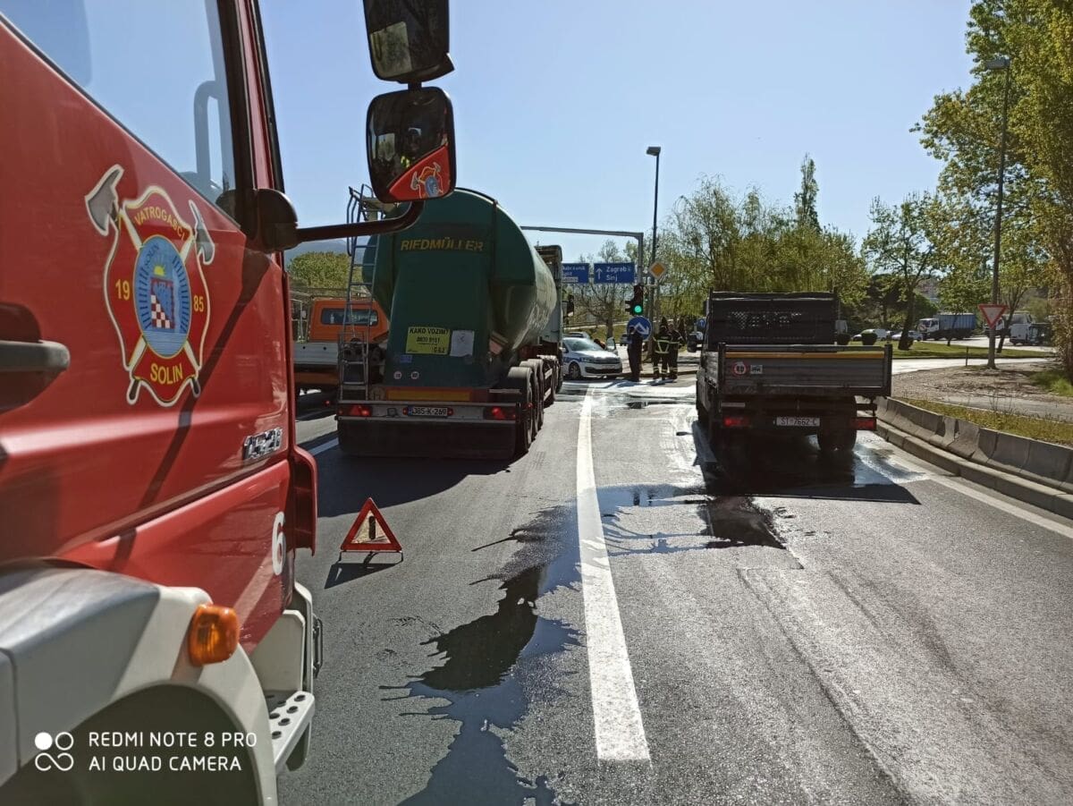 Prema informacijama solinskih vatrogasaca, na kamionu su se zapalile kočnice. Vatra je brza ugašena, a vatrogasci su se vratili u 9:45.