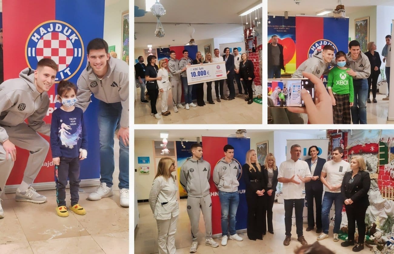 Nogometaši Hajduka osobno su došli u splitsku bolnicu kako bi razveselili najmlađe pacijente. Među njima su bili Dominik Prpić i Mihael Žaper, koji su se družili s djecom i podijelili simbolične poklone.