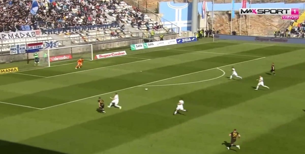 Dvije minute kasnije Marin je u jako dobroj prilici pucao ravno u Malenicu da bi u 42. minuti Dinamov igrač na posudbi imao veliku šansu. Frigan ga je proigrao, Malenica je izašao na rub šesnaesterca, ali je Marin u želji da prebaci golmana promašio gol za dva metra.