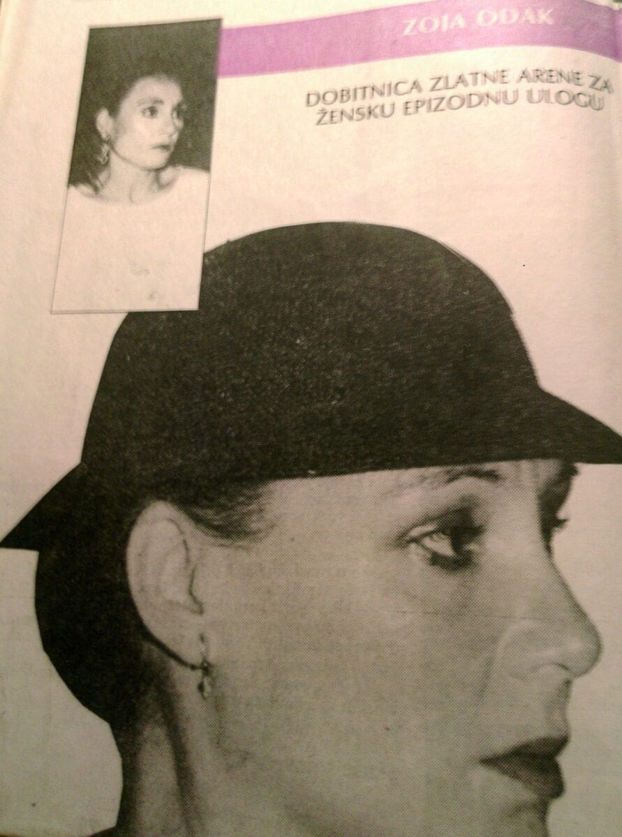 Filmski festival u Puli te 1992. prisjetio je svojim filmovima ljubitelje umjetnosti, na postojanja i trajanja mnogih filmskih djelatnika. Jedna od nagrada zasluženo je došla u Split: Zlatna arena za žensku epizodnu ulogu, dodijeljena je glumici Zoji Odak za ulogu majke u filmu redatelja Krste Papića „Priča iz Hrvatske“. Za svoje glumačke kreacije Zoja je i prije dobivala priznanja na festivalima; na međunarodnom u Bergamu 1987. godine za glavnu žensku ulogu u filmu „Ada“, do domaćih: Prvomajska nagrada, Zlatni lovorov vijenac na MES-u i „Dubravko Dujšin“. Bilo ih je i prije i kasnije-čitava biserna ogrlica!