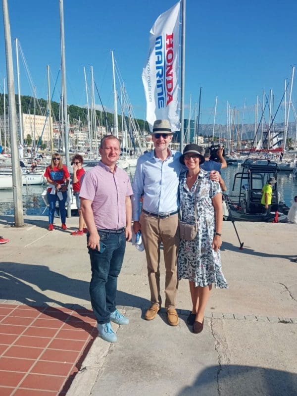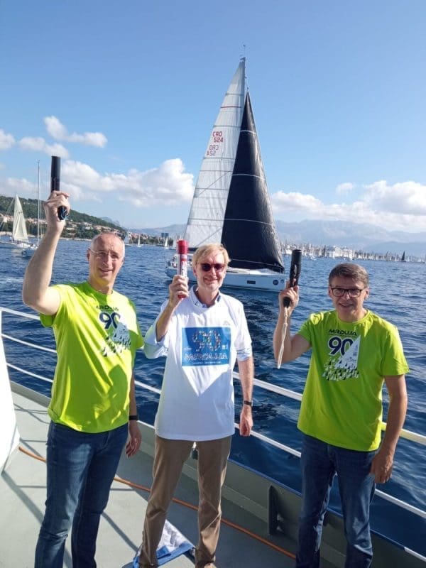 Splitski gradonačelni Ivica Puljak označio je strat regate. Društvo su mu pravili izaslanik predsjednik RH Željko Jovanović i danski veleposlanik Ole Frijs Madsen.