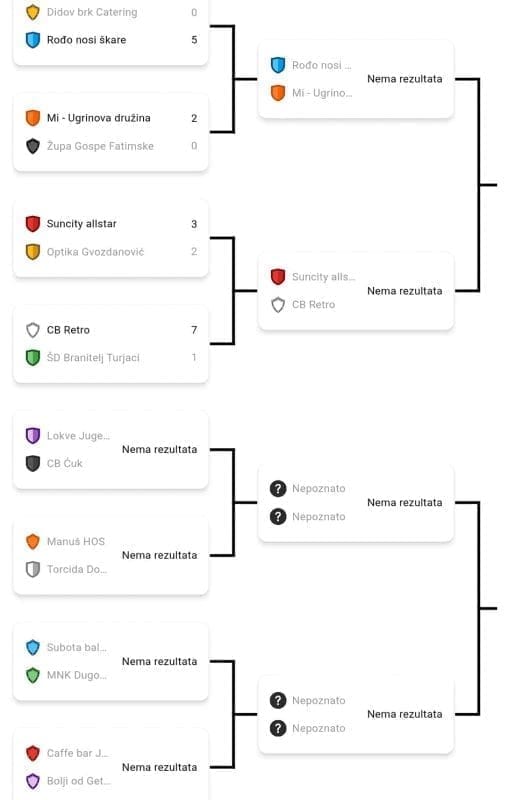 Prvi dan turnira, snage su odmjerili Suncity i Optika Gvozdanović, CB Retro i ŠD Branitelji Turjaci, Didov brk Catering i Rođo nosi škare.