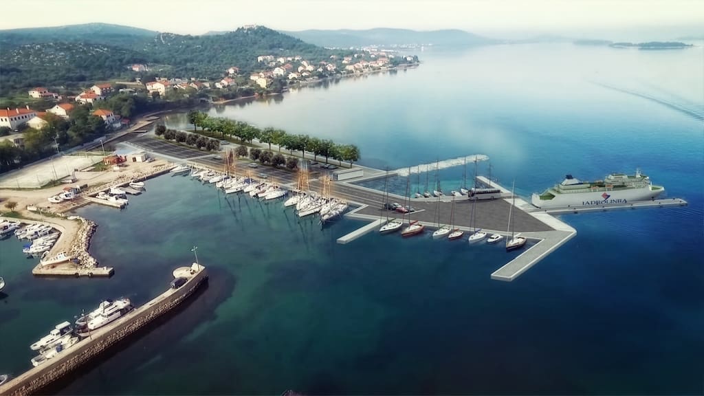 Projekt se odnosi na ulaganja u izgradnju trajektnog pristaništa koje se sastoji od gata s 2 veza, ukrcajno-iskrcajnog prostora i ukrcajnog čekališta, platoa pristaništa koji omogućuje ukrcaj i iskrcaj vozila, podmorskog propusta cirkulaciju mora između vanjskog i unutarnjeg akvatorija te platoa ukrcajnog čekališta i parkirališta u funkciji pristaništa na lokaciji u mjestu Tkon.