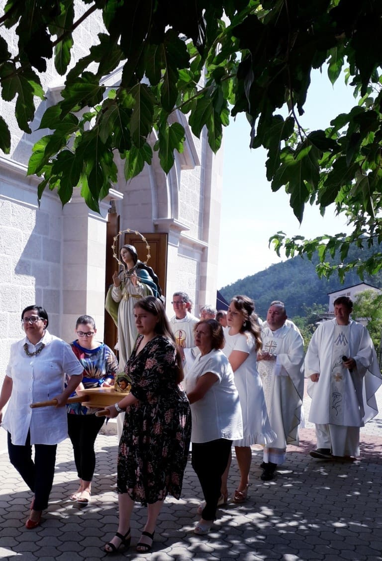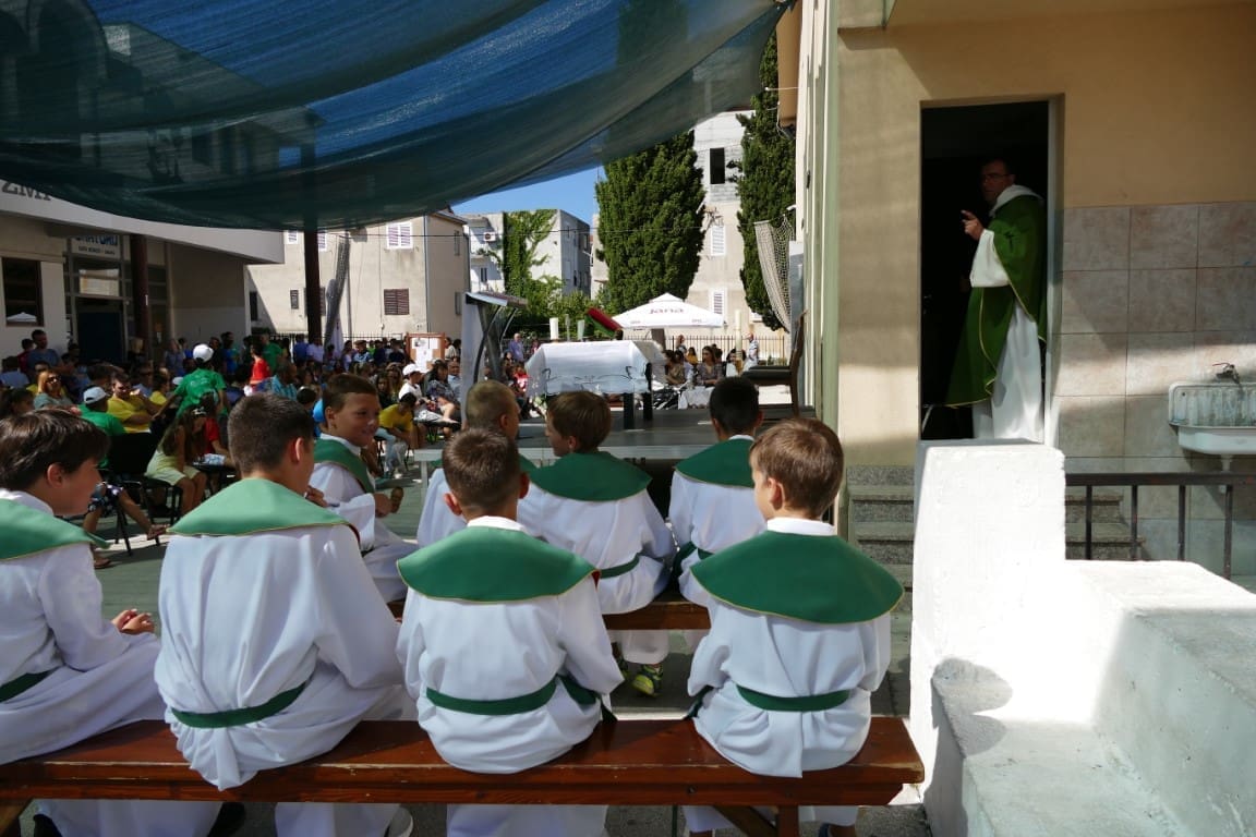 Oratorij je započeo zajedničkom jutarnjom sv. misom koju je u dvorištu ispred crkve predvodio župnik don Ivan Terze. Na misnom je slavlju proslavljeno i krštenje male Petre, a don Ivan je u propovijedi podsjetio na važnost molitve koja mora biti uporna i puna vjere te usmjerena na ono što je za naše vječno dobro.