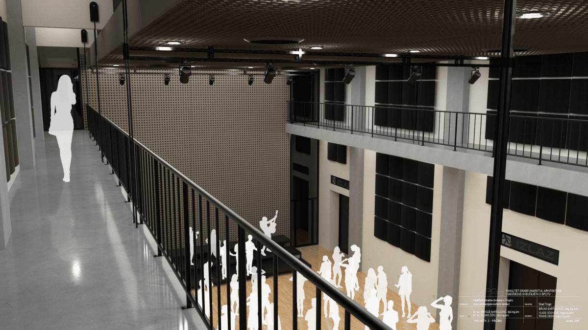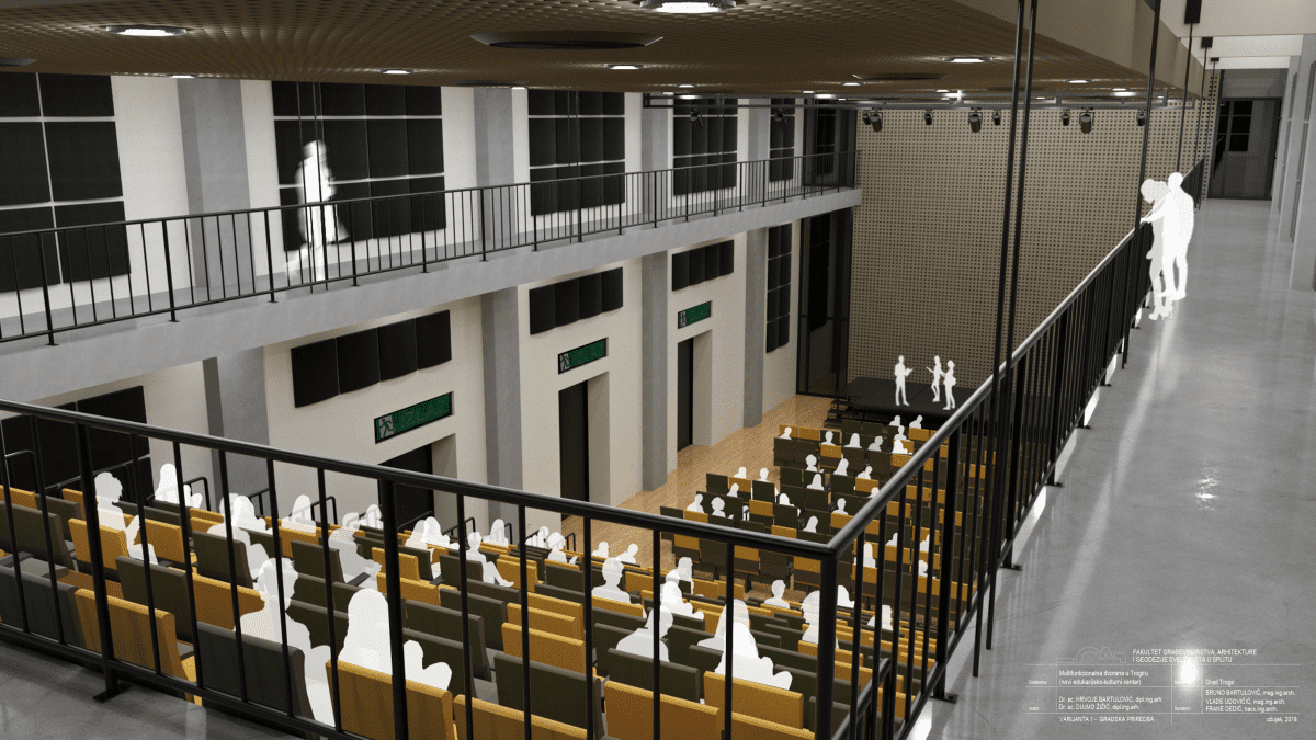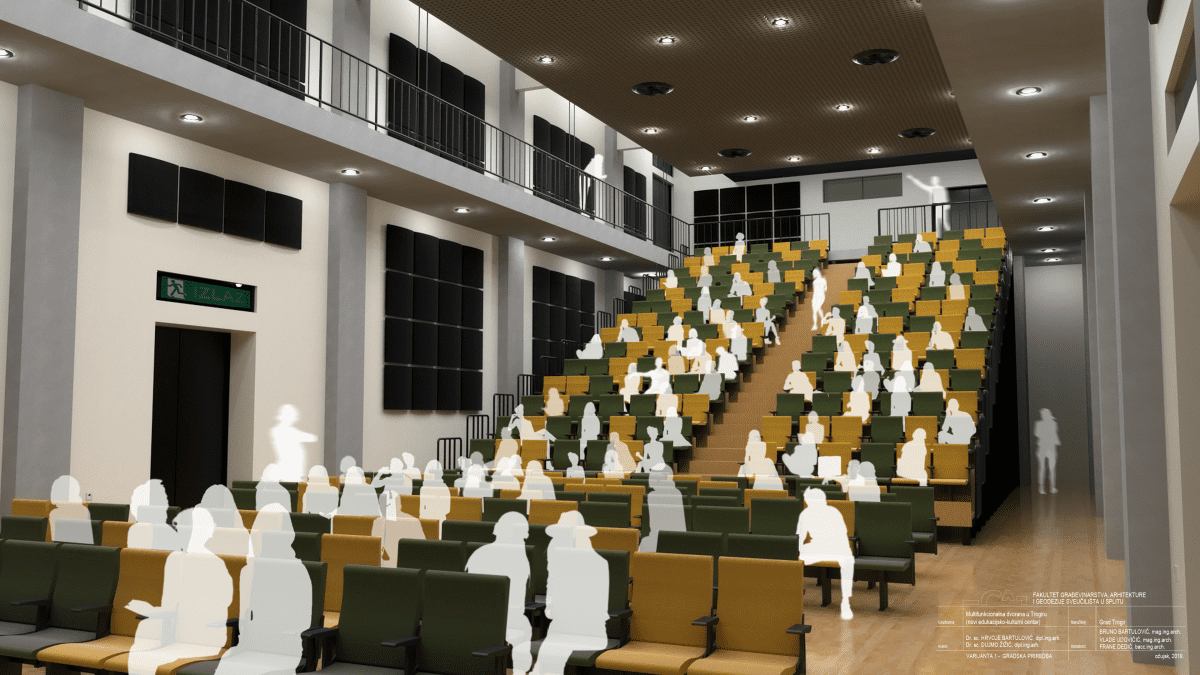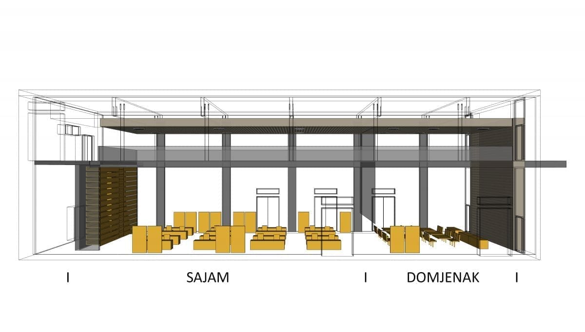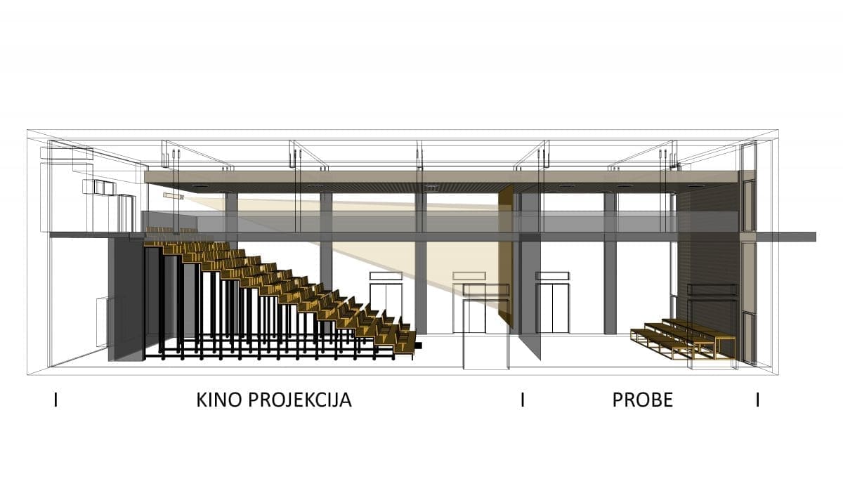 Za glavnu dvoranu osmišljene su tri glavne varijante korištenja - jedna za održavanje priredbi, koncerata, konferencija i slično kada bi se koristio cijeli volumen i površina dvorane, u drugoj varijanti dvorana se pregrađuje u dva dijela u kojima se odvijaju zasebni događaji, primjerice, kino projekcija i probe nekog kulturnog društva, a treća varijanta predviđa sajamski prostor i prostor za domjenak na površini cijele dvorane. Dvorana će ostati iste visine, ali će se na gornjem dijelu napraviti galerija, funkcionalno višestruko važna jer ne samo da se dobiva dodatan prostor nego se na taj način ojačava statika i učvršćuju vanjski zidovi zgrade.